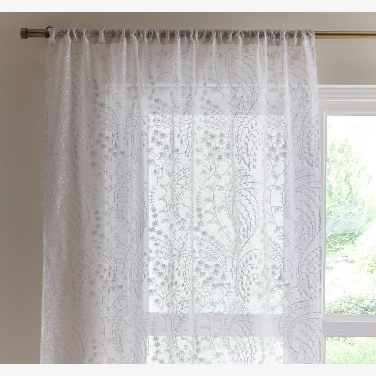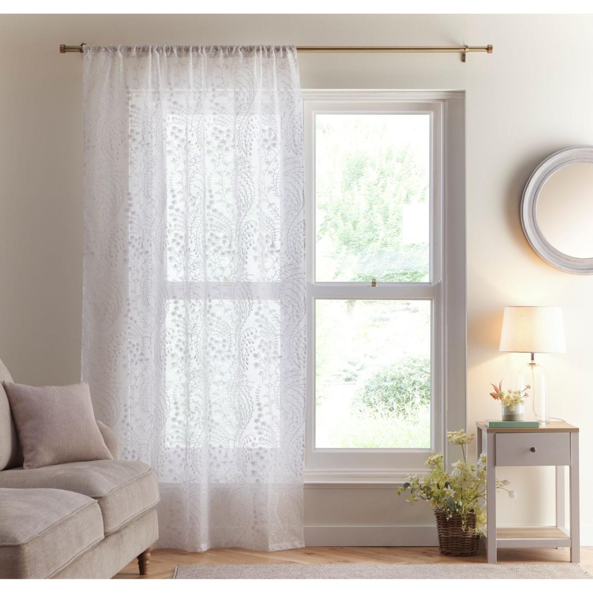 * Includes 1 x voile panel* Slot top header* Machine washable A beautiful embroidered floral trail which brings a sophisticated design and look to any room. The Spring Flowers sheer fabric allows light to flow into the room whilst the embroidered pattern provides privacy for your home. This panel has an easy to hang slot top header so there's no fuss when it comes to fitting it. Machine washable for a quick and convenient refresh. This collection is verified by OEKO-TEX and independently tested for harmful substances as well as manufactured using sustainable processes under socially responsible working conditions.