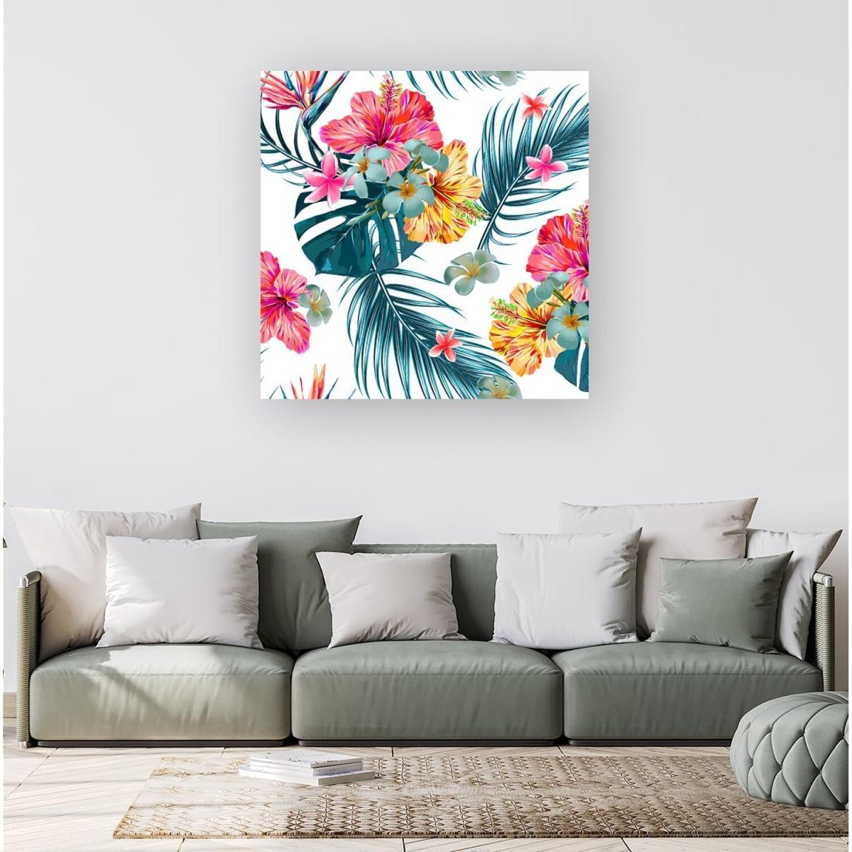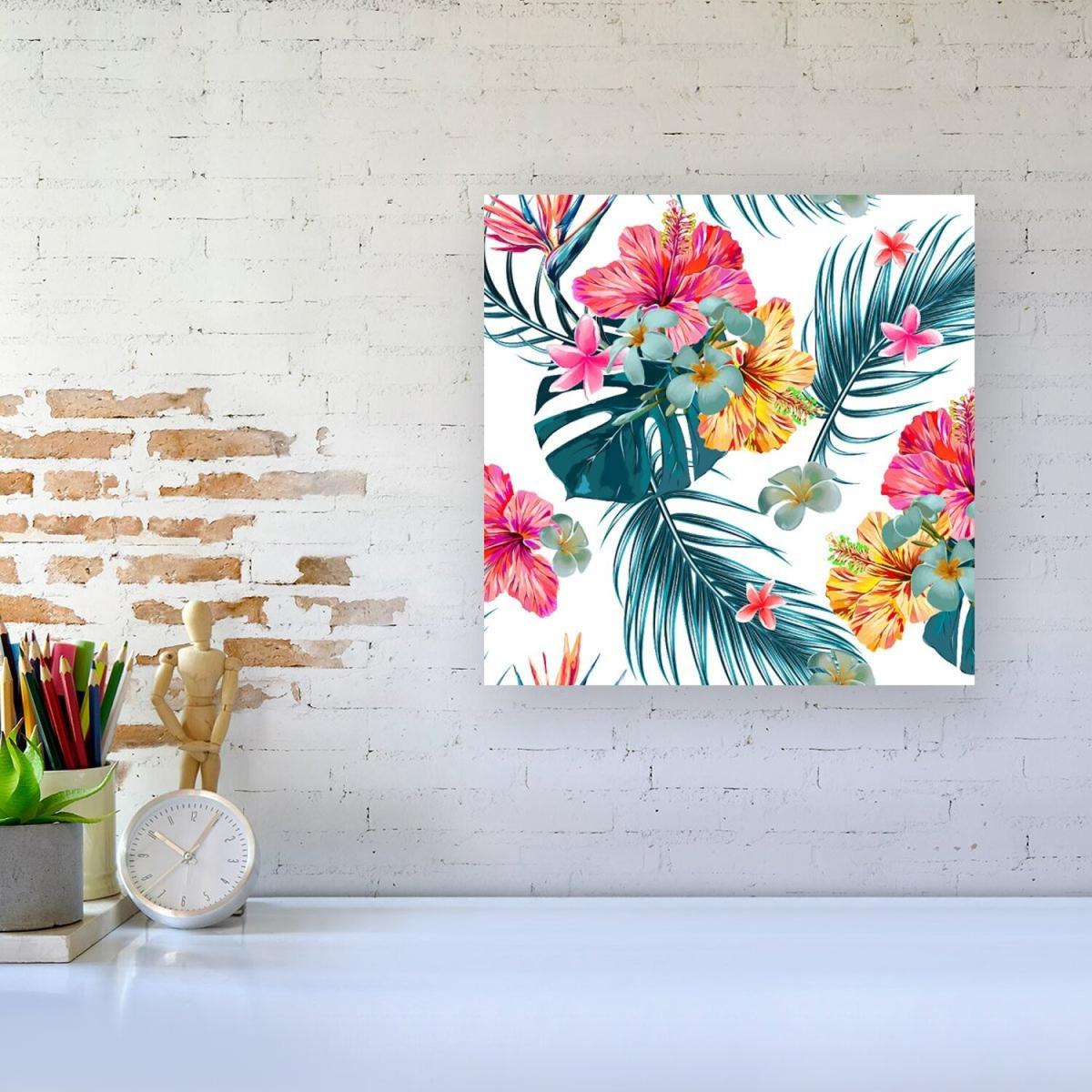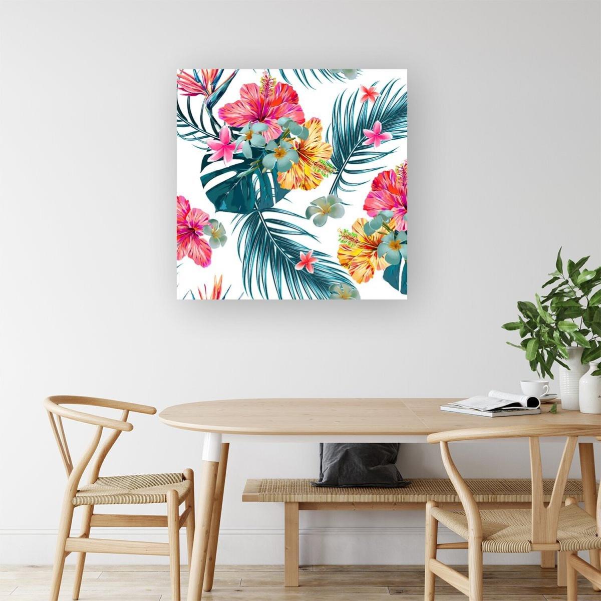 I love how the Spring Summer Flowers canvas print adds a splash of colour and a lively vibe to various interiors. Its small size makes it versatile, perfect for brighten-up spaces like kitchens, bathrooms, or small living areas. This print works particularly well in contemporary or boho schemes, where a bold floral statement complements natural textures and neutral tones. To style it effectively, consider pairing it with other botanical or colourful accessories, or placing it on a shelf alongside ceramics or succulents for a fresh, layered look. It's a practical way to introduce a touch of nature-inspired colour without the maintenance of real flowers.