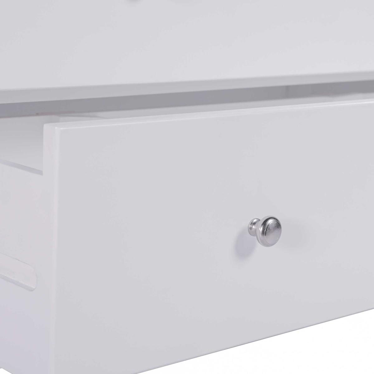 Constructed from solid acacia and engineered wood with a white painted finish, the Springwell White Wooden 2+3 Drawer Chest of Drawers presents five sliding drawers for generous storage. Its robust structure requires diligent care to uphold its immaculate appearance and functionality.