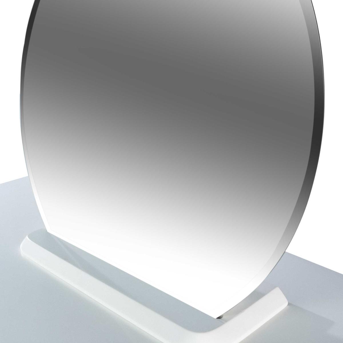 The Springwell White Round Mirror, crafted from solid wood and glass with a white painted finish, perfectly complements the Springwell dressing table. Preserve its enduring beauty by regularly dusting and safeguarding its surfaces.