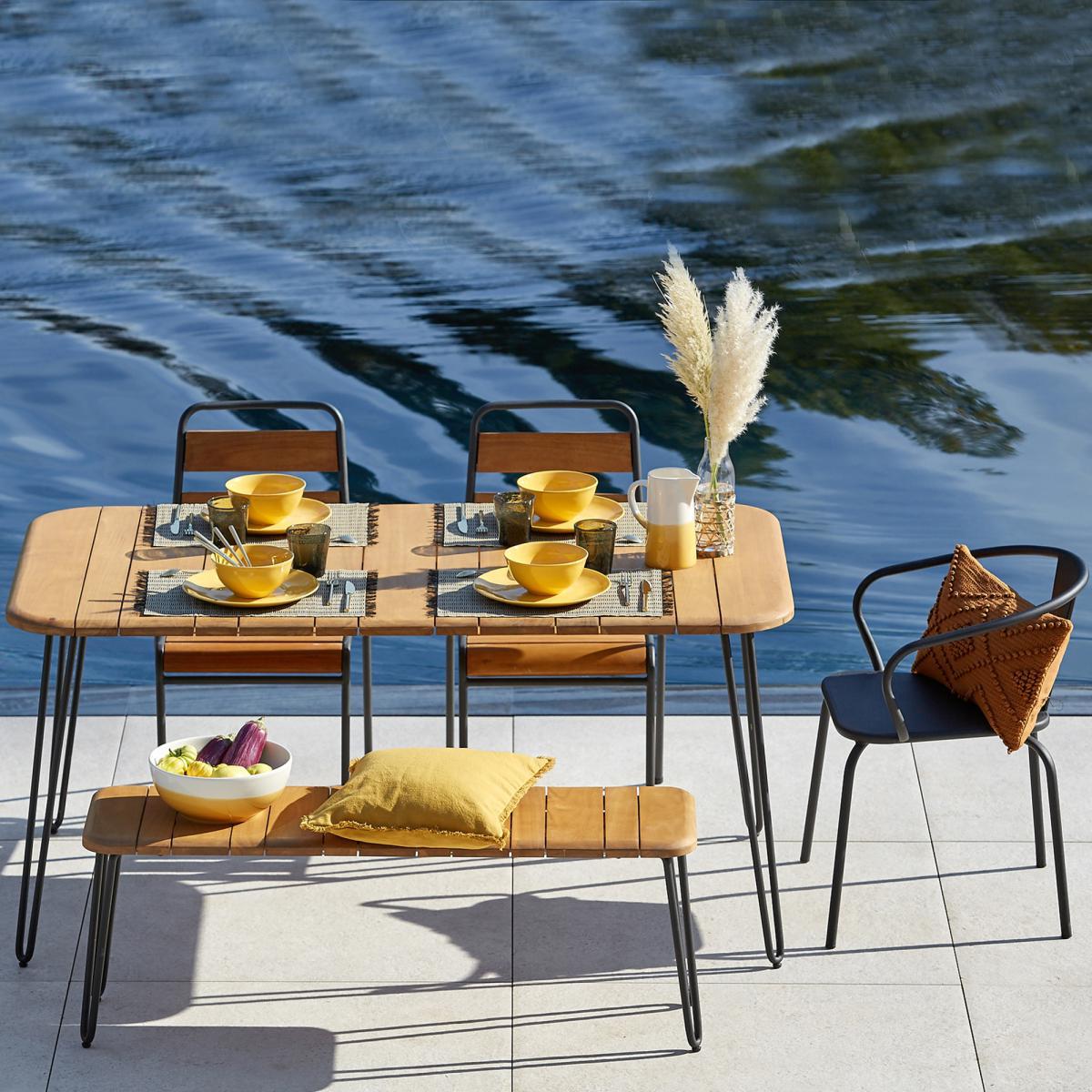 I love this folding bench for its minimalist, functional design that works equally well indoors and out. It’s perfect for adding extra seating when hosting guests or transforming outdoor spaces into stylish lounges. The acacia wood slats bring warmth and natural texture, making it versatile enough to complement both contemporary and rustic interiors. For styling, consider pairing it with cushions or throws for comfort, or use it as a statement piece in a hallway or bedroom by layering with plants or baskets nearby. Its folding feature also makes it practical for seasonal use or compact storage, making it a smart addition to any garden or transitional indoor area.
