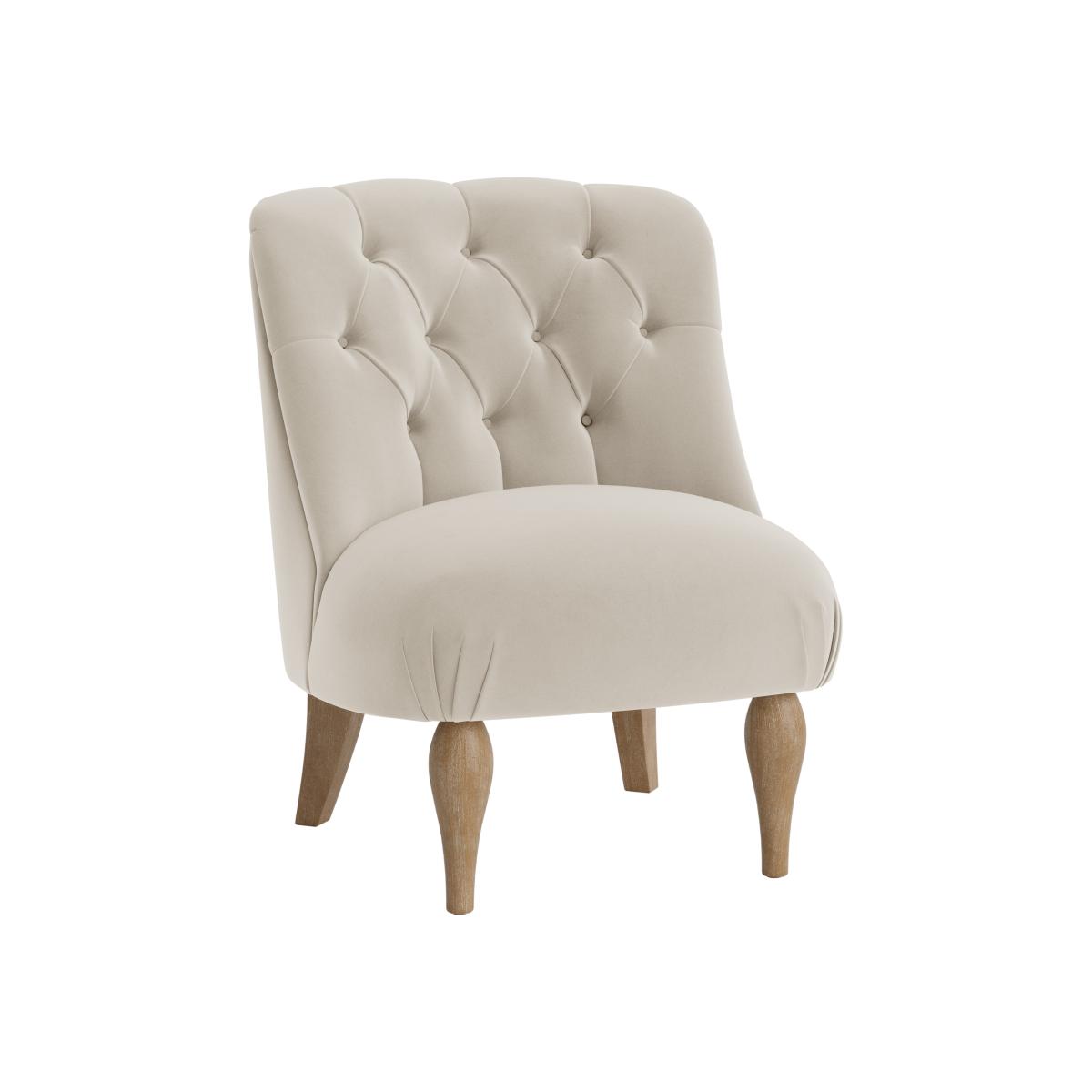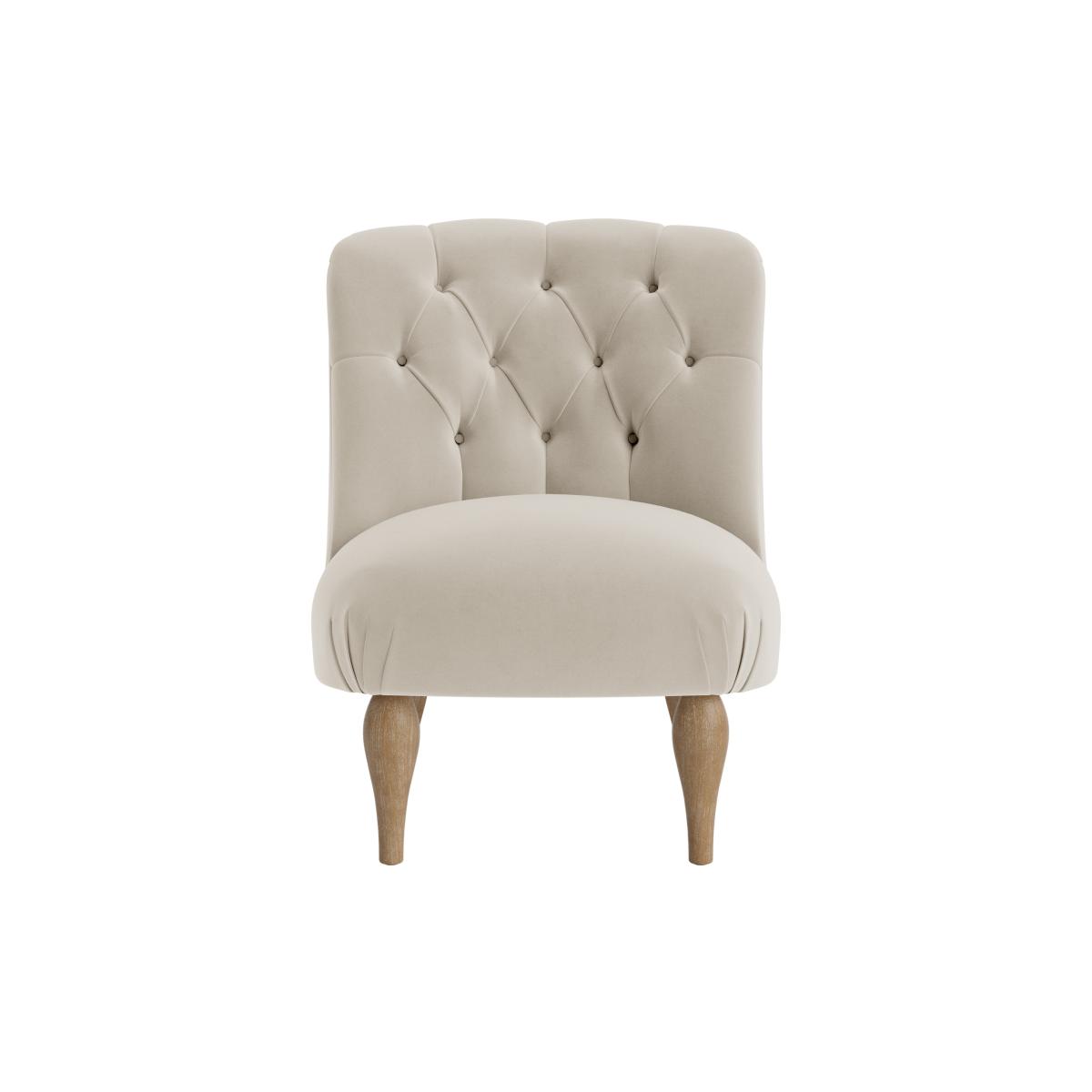 I love this little chair because of its classic yet versatile design. The tufted back adds a touch of elegance, making it suitable for traditional, cottage, or even contemporary interiors when paired correctly. It works particularly well in cosy corners, reading nooks, or as an accent piece in both living rooms and bedrooms. Practical styling tips include mixing it with textured throws or cushions for added comfort, or pairing it with a sleek side table to create a charming corner. Its neutral colour makes it adaptable, allowing it to blend seamlessly with colour schemes ranging from soft pastels to bold contrasts. Perfect for adding a hint of charm and a conversation piece without overwhelming the space.