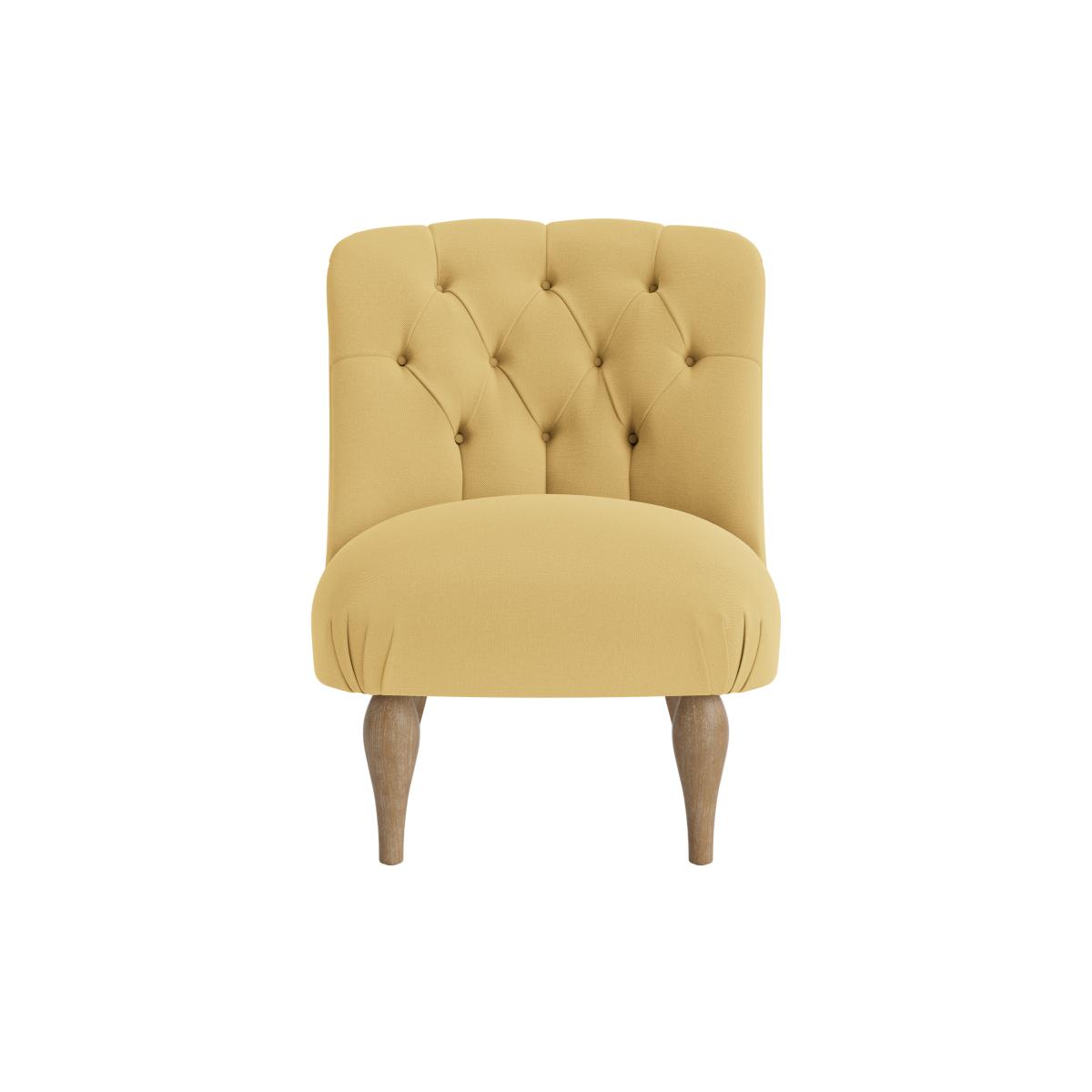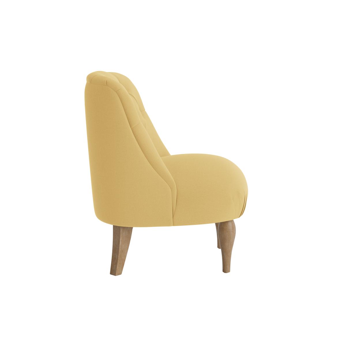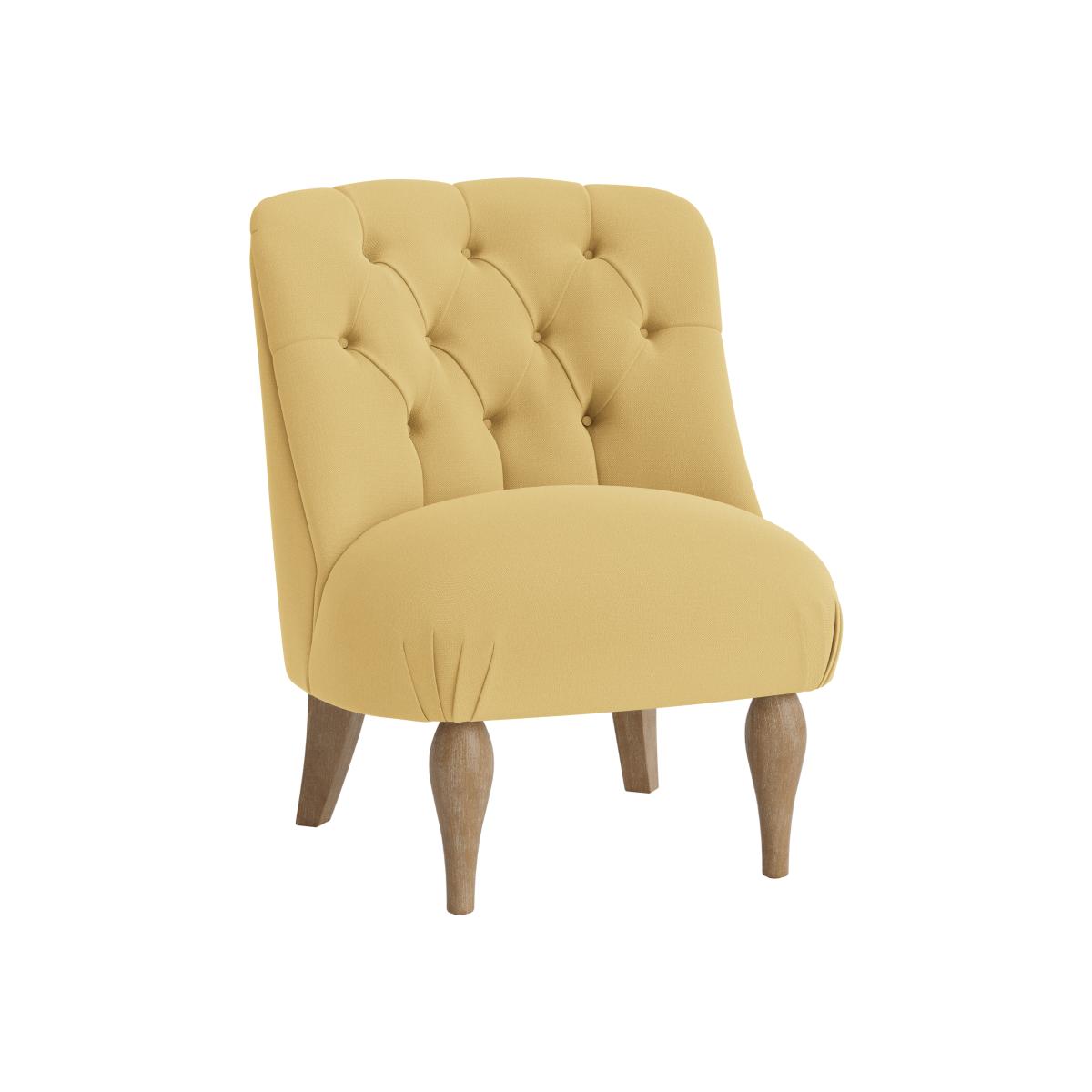 I love this little armchair because of its approachable size and charming design. The tufted back and soft yellow upholstery give it a cosy yet cheerful vibe, making it a versatile addition to both contemporary and traditional interiors. It works particularly well in relaxed living rooms, reading nooks, or even in bedrooms as a pop of colour. Practical styling tips include pairing it with neutral tones to let the yellow stand out, or mixing it with wooden accents for a warm, inviting feel. Due to its size, it’s perfect for smaller spaces or as an accent rather than a main seating piece, providing comfort without overwhelming the room.