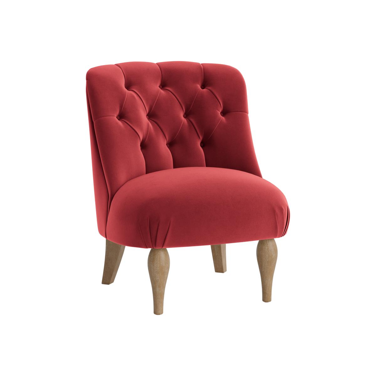 I love this little accent chair because of its playful yet sophisticated design. The tufted back adds texture and visual interest, making it a great statement piece. It works well in a variety of interiors - from a cosy reading nook to a more eclectic living room. Practical styling tips include pairing it with a patterned cushion or placing it alongside a sleek side table for added functionality. Its versatile size makes it ideal for small spaces or as a supplementary seat in larger rooms, offering both comfort and charm without overwhelming the space.