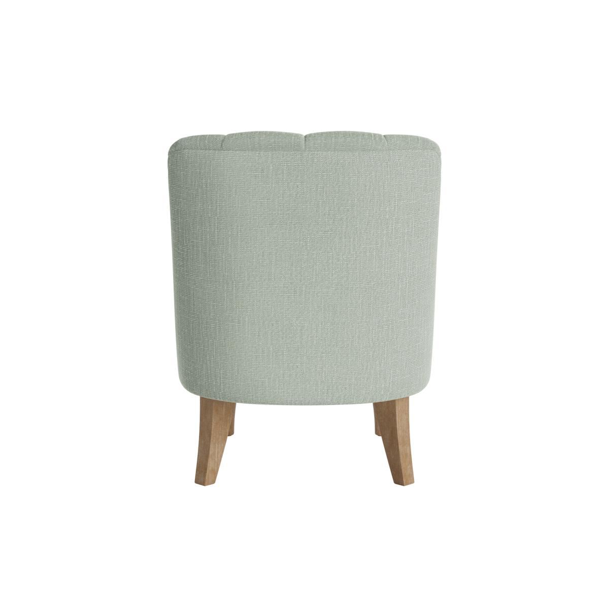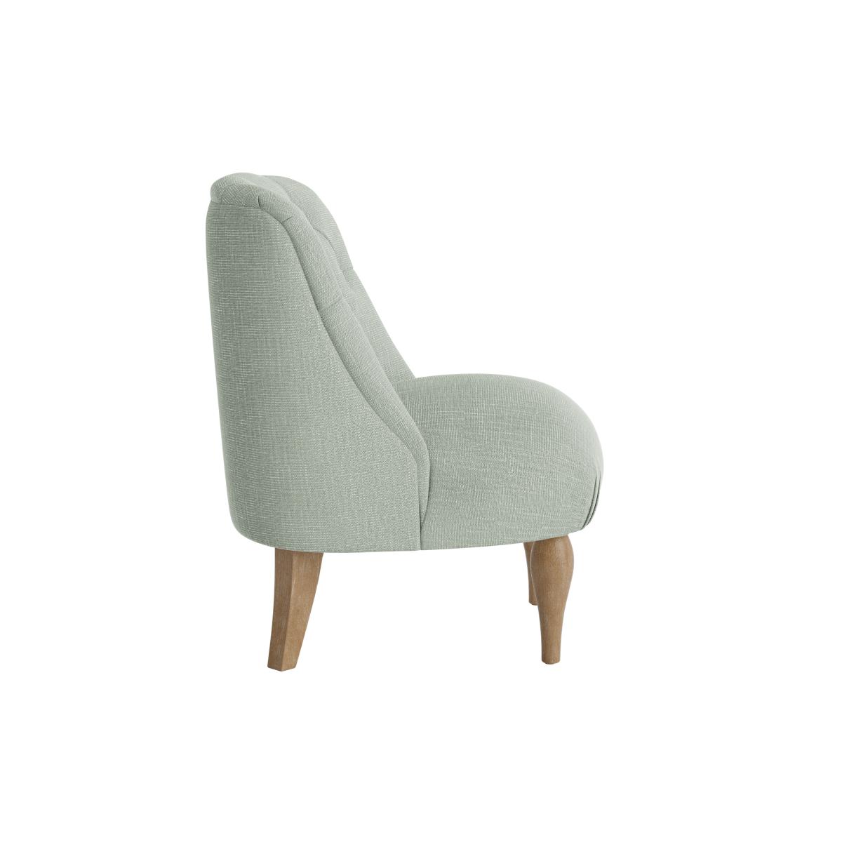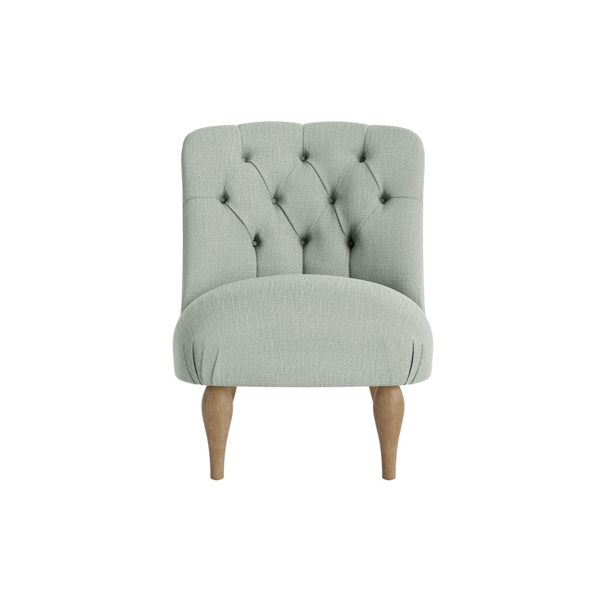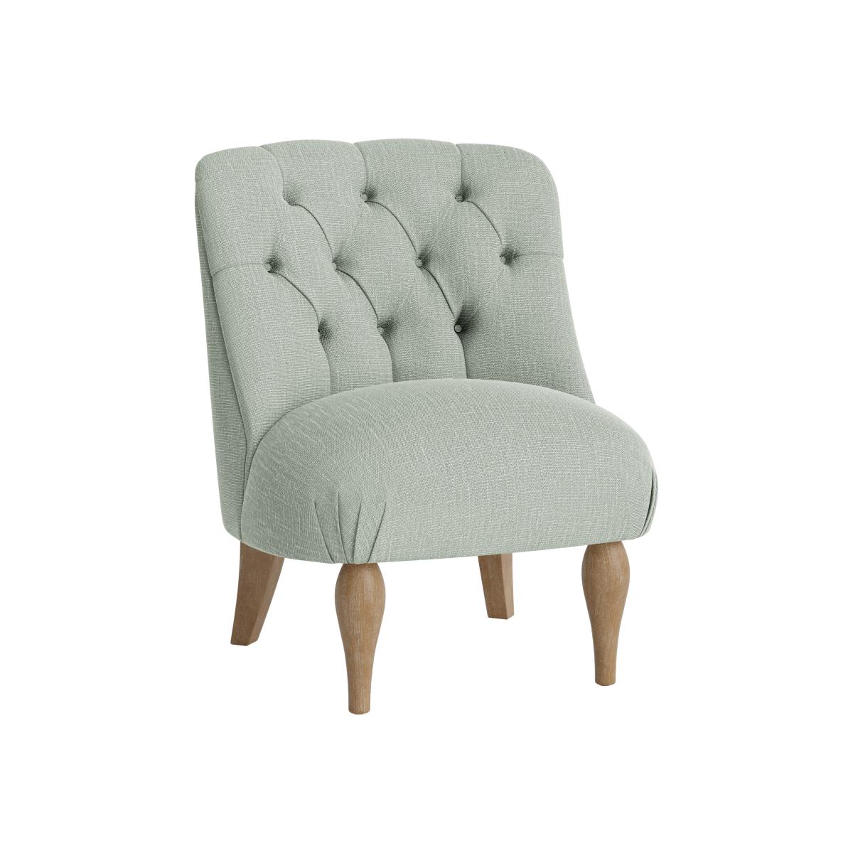 I love this little chair because of its versatile design and soft colour, making it a great addition to both modern and traditional interiors. It works well in cosy corners, bedrooms, or as a statement piece in a living area. The tufted back adds a touch of classic charm, while the wooden legs give it a grounding, natural feel. For styling, consider pairing it with neutral or pastel cushions to enhance its calm aesthetic, or layer it with a textured rug nearby for a cosy vibe. Practical tips include keeping the surrounding space uncluttered to let its charm stand out, making it an ideal spot for relaxing or reading.