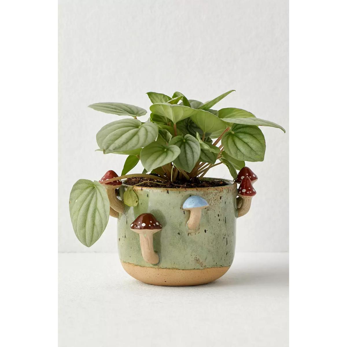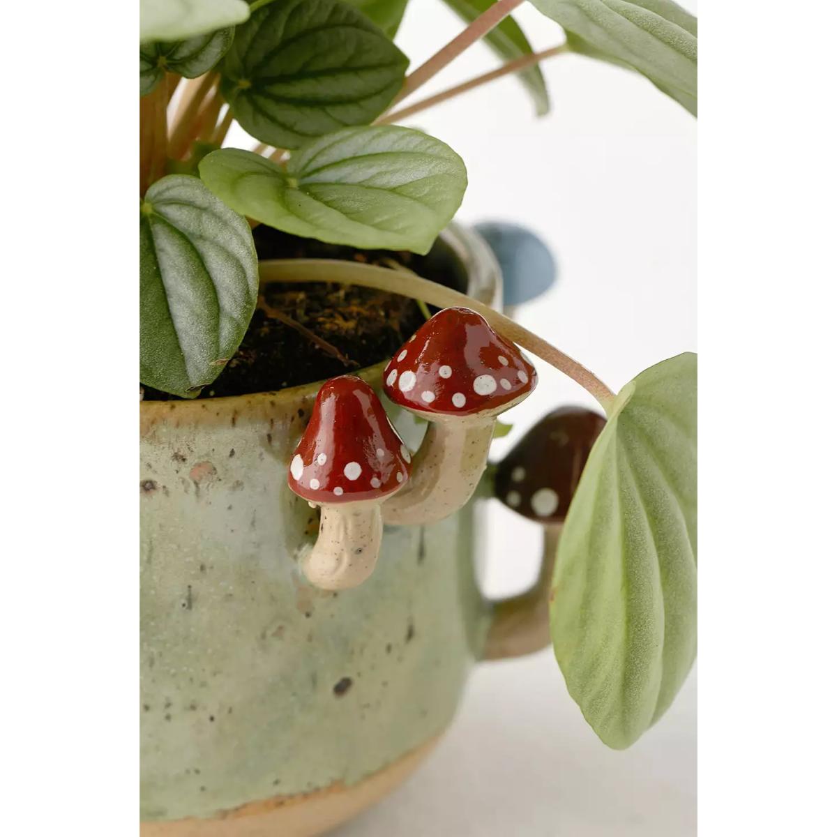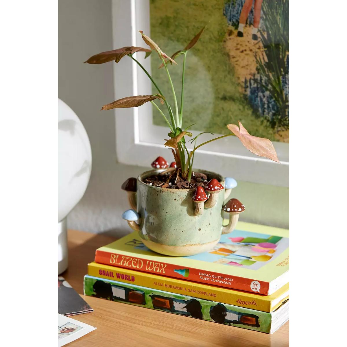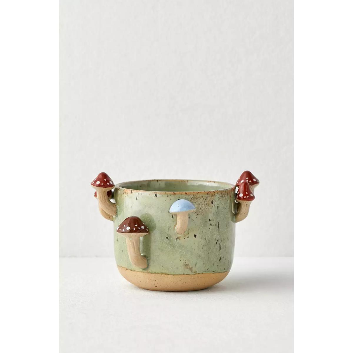 Bring cottagecore vibes to your space with this mushroom plant pot. Crafted from a glazed ceramic featuring tiny mushrooms sculpted allover. Complete with a drainage hole at the base to allow excess water to flow through. **Content + Care** \- Ceramic \- Wipe clean