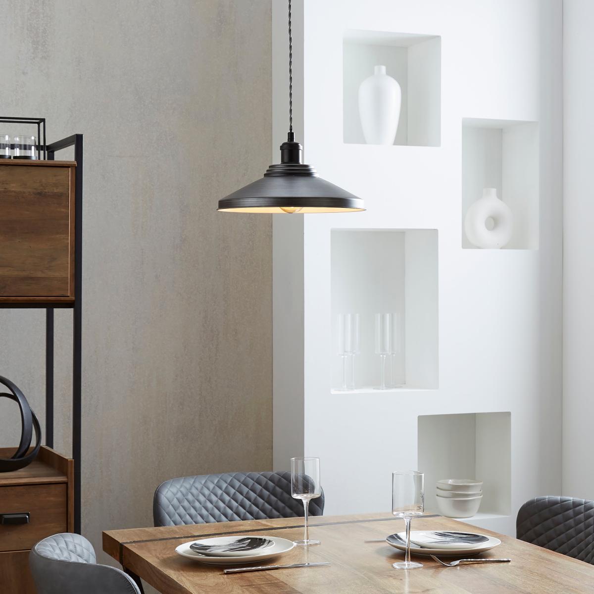 I love this pendy because it combines industrial charm with a clean, modern look. The spun metal design in pewter makes it versatile, working well in both contemporary and rustic interiors. It’s perfect for creating a focal point over a dining table or kitchen island, providing warm, ambient light without being overpowering. For styling, consider pairing it with other metal finishes or soft textiles to add texture - it pairs especially well with matte black or wooden accents. Keep the colour palette neutral or monochrome for a sleek, unified aesthetic, or introduce coloured bulbs for a touch of personality. This lamp is a practical choice that adds a subtle touch of style without dominating the space.