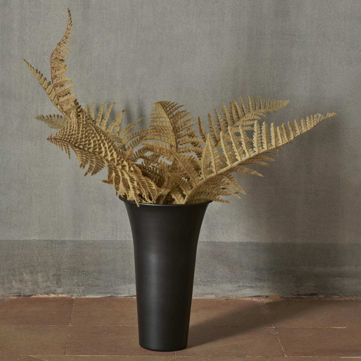 I love this Spun Vase for its sleek black metal finish and understated elegance. It works particularly well in contemporary or minimal interiors, adding a touch of sophistication without overpowering the space. Its tall, narrow form makes it ideal for showcasing single stems or small, elegant floral arrangements, keeping the overall look clean and uncluttered. For styling tips, try placing it on a sideboard or coffee table as a statement piece, or pair it with other metallic accents for a modern, cohesive look. Because of its neutral colour and shape, it also seamlessly integrates into more eclectic spaces when paired with textured or coloured flowers, providing a versatile and stylish focal point.