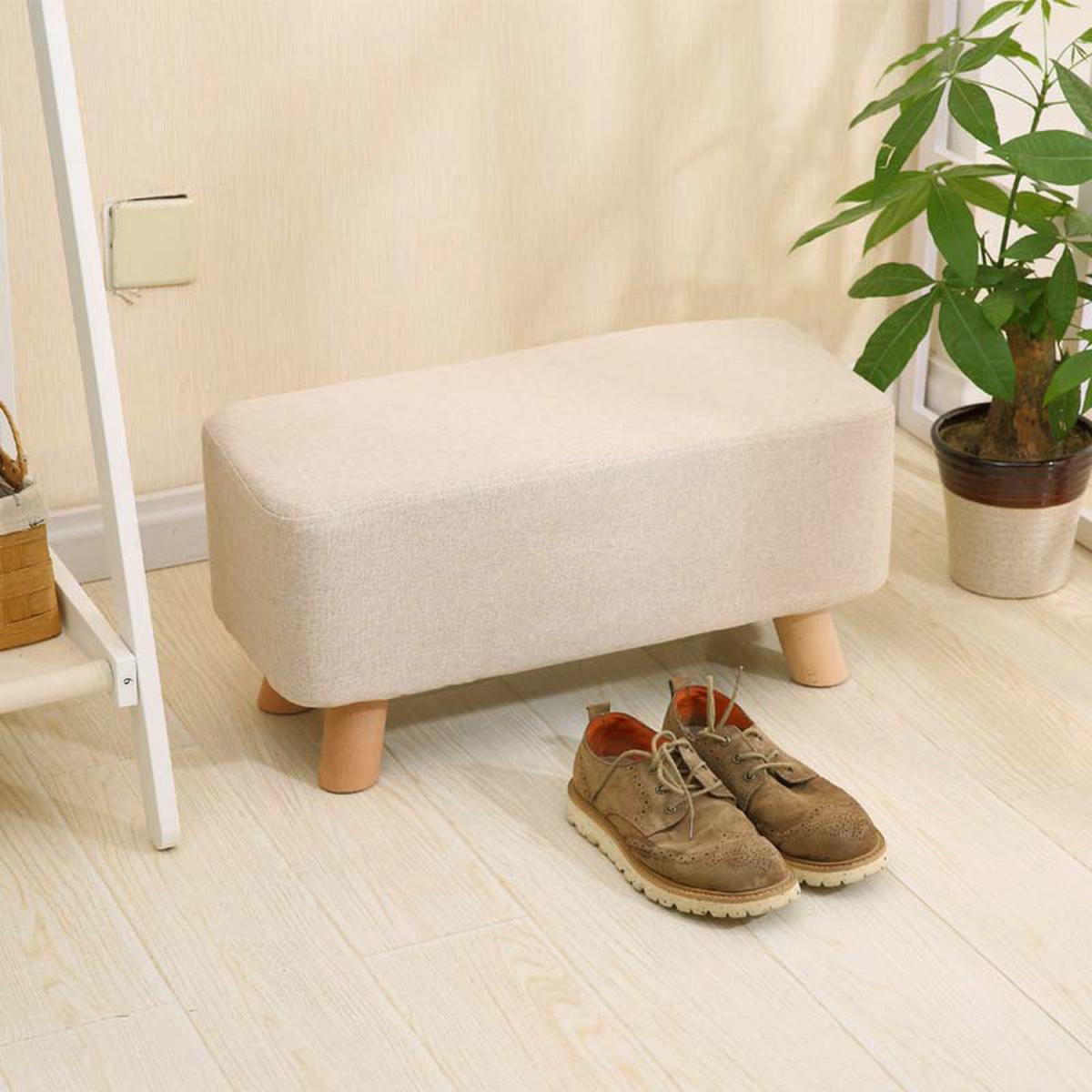 Square Flax Fabric Footstool Ottoman Stool - Beige