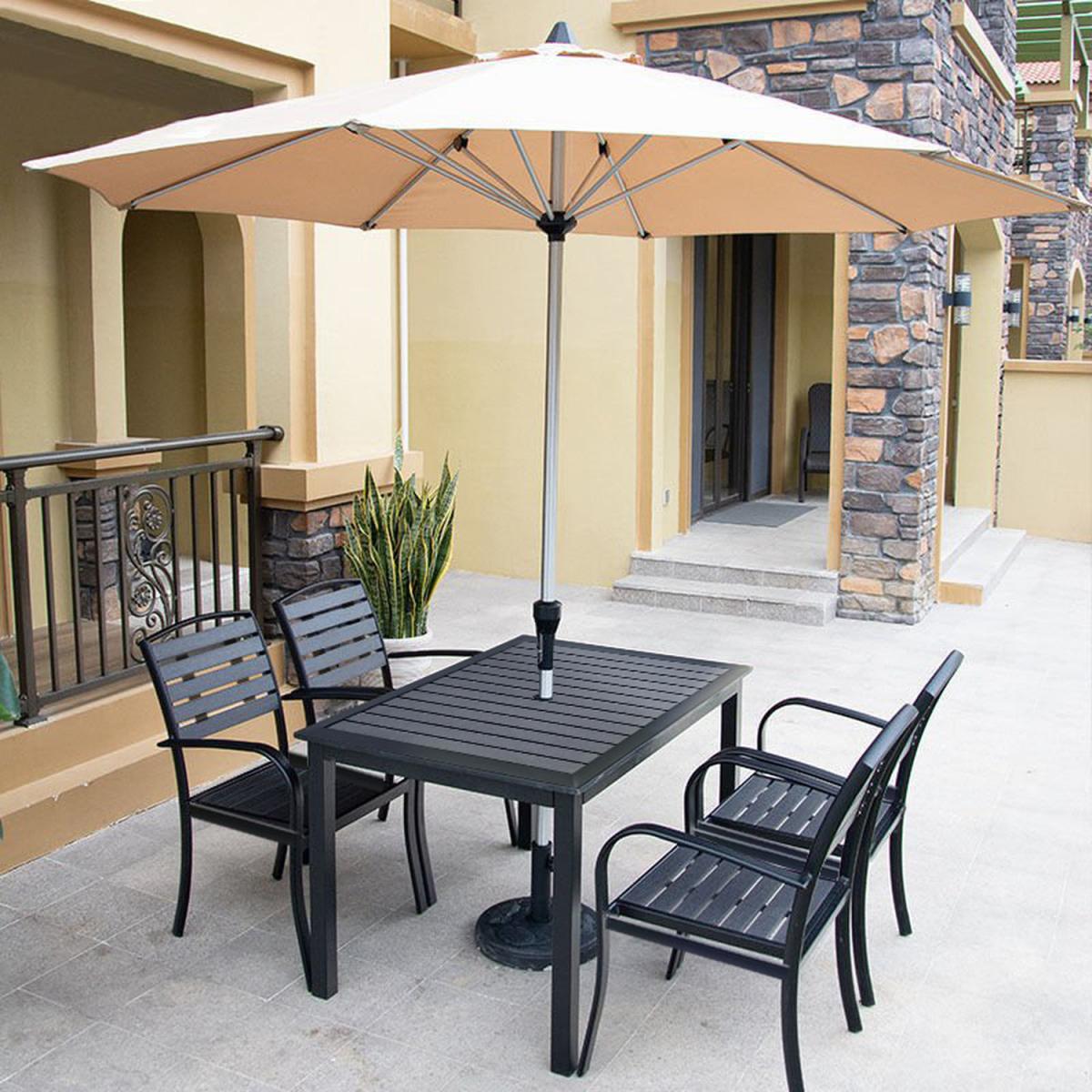 Create an inviting modern hub where you can gather with friends and family for meals, drinks, conversation, and laughter using this dining set from Livingandhome. Available in a choice of colors and dimensions to suit your existing decor, the set features a dining table and four chairs with striking silhouettes and a modern color palette for plenty of urban appeals. Durably made from weather-resistant material to last through the seasons. Assembly is required. Square Garden Dining Table and 4 Chairs Set Grey - Grey