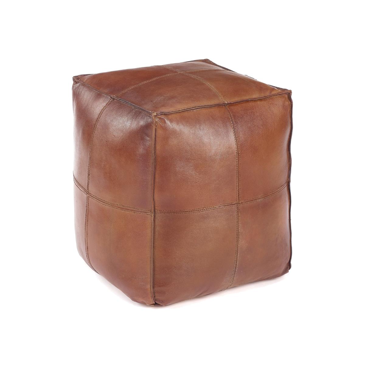 Square Leather Footstool - Brown / 25 - 30 cm