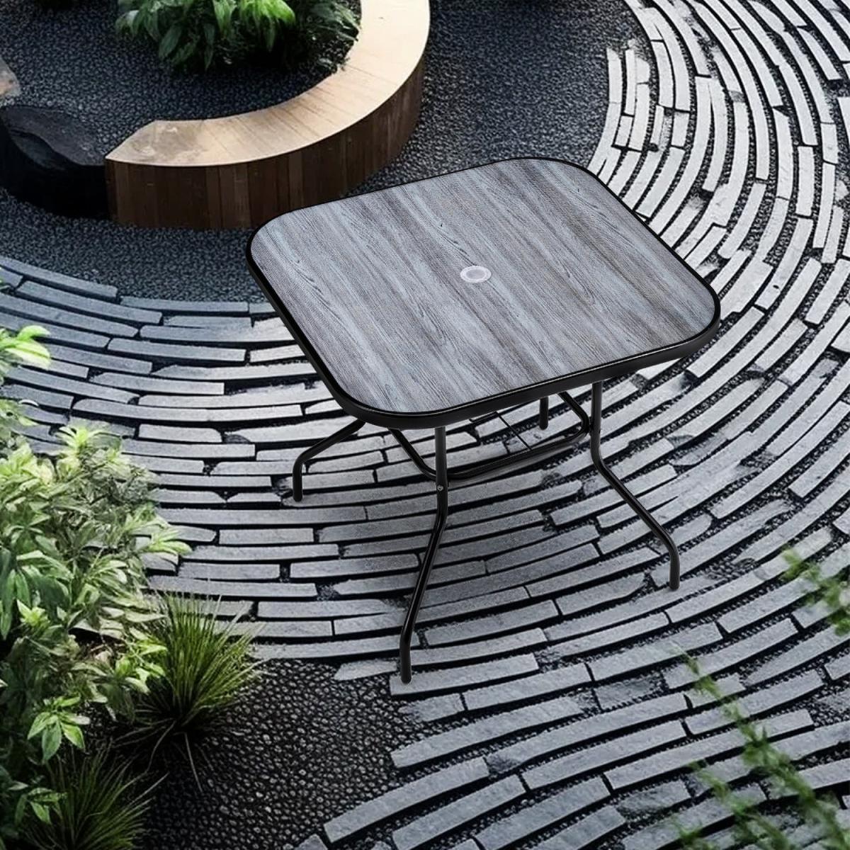 Elevate your moments with Livingandhome's Square Marble Tempered Glass Garden Table. Enjoy refreshing mornings or evenings at this marble coffee table, crafted from heat-resistant, explosion-proof tempered glass. The realistic marble texture adds sophistication, blending style with minimalism. The built-in parasol hole provides sun and wind protection for undisturbed outdoor enjoyment. Choose from various sizes to suit your space, and indulge in the sleek design featuring a tempered glass tabletop for easy maintenance, rounded corners for safety, and a rust-proof, durable black metal base for long-lasting use
