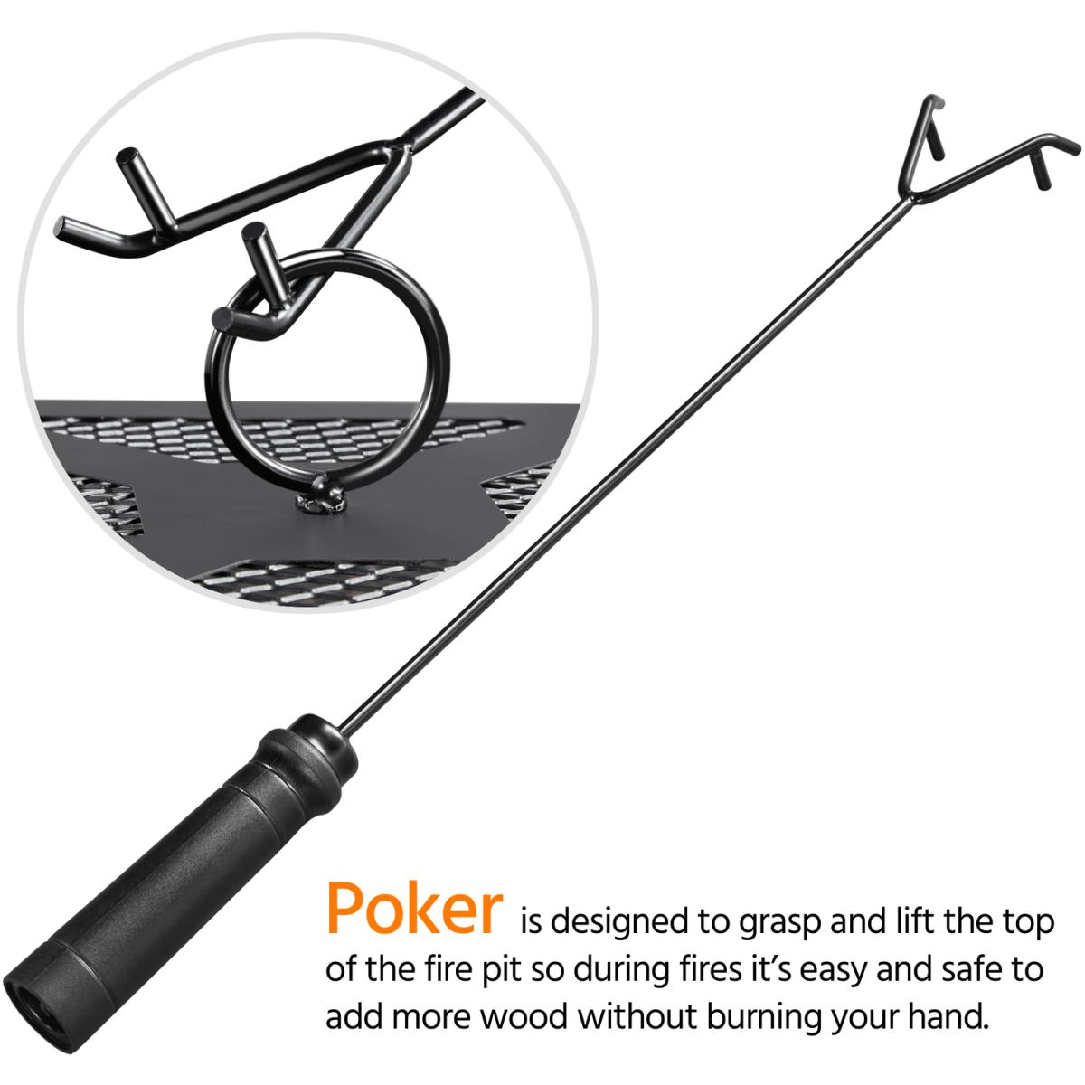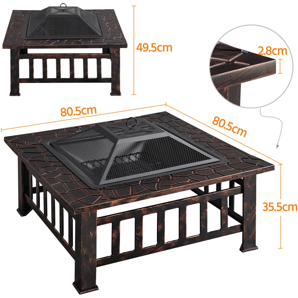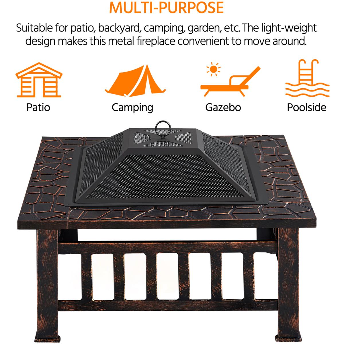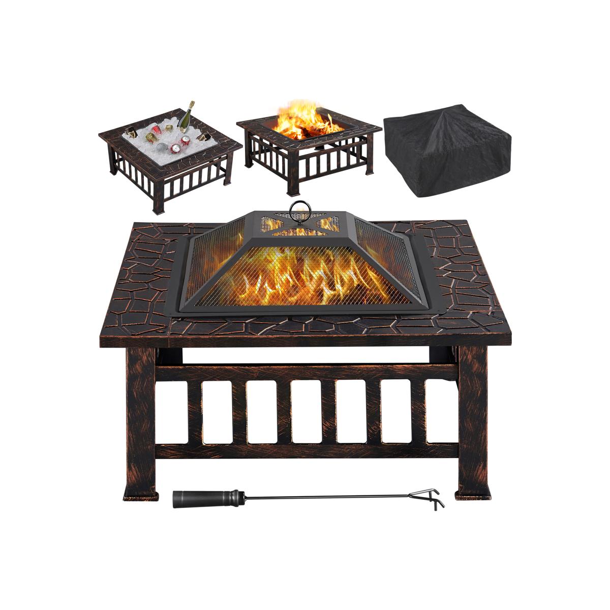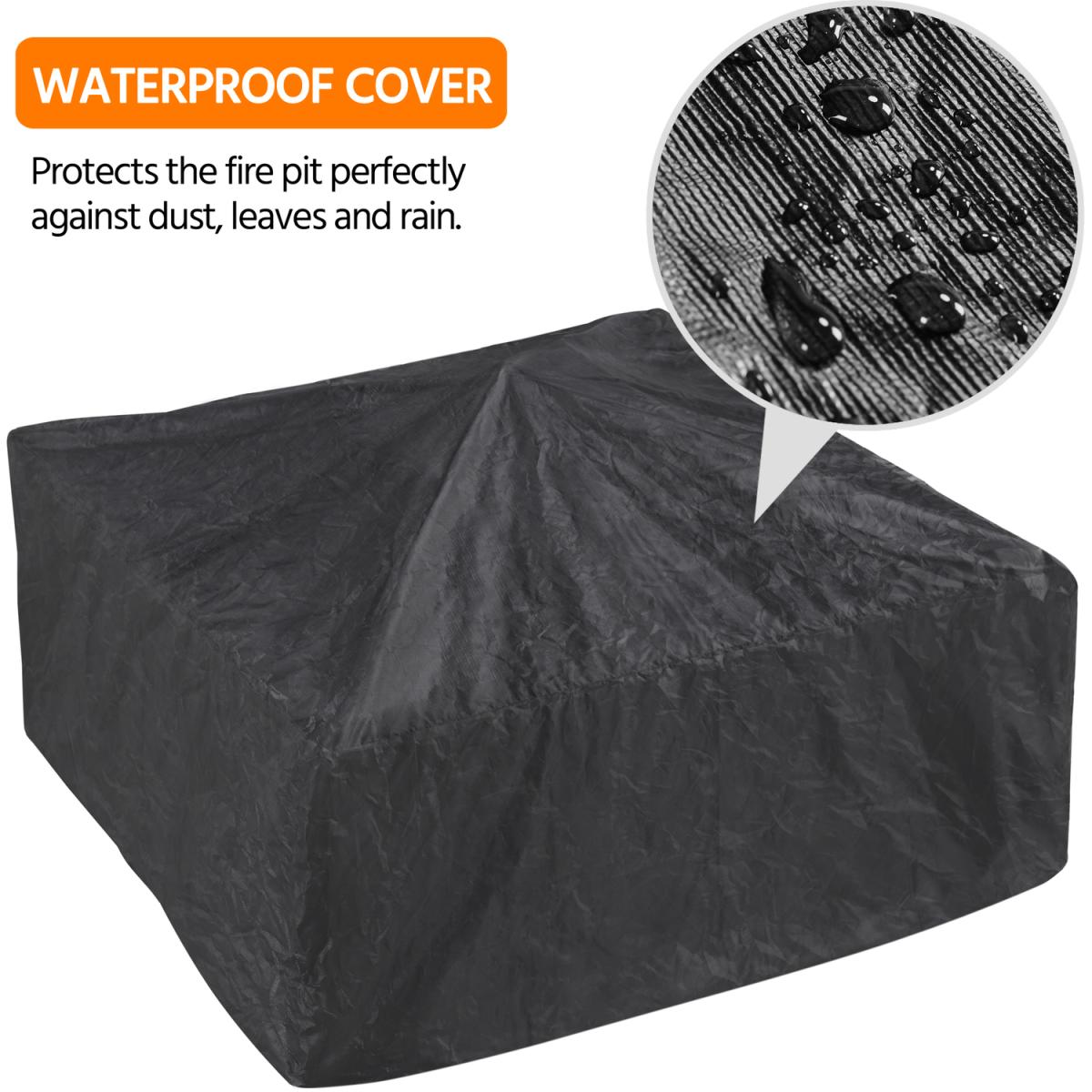 H. The wide and deep fire bowl accommodates more logs and the 6 air holes at the bottom increase airflow. The spark screen and poker help control fire safely. The included waterproof PVC cover keeps the fire pit dirt-free and dry when not in use. The sturdy square design with a unique rock pattern makes it an aesthetic and practical addition for heating, barbecuing, and cooling drinks to your patio, garden, and yard. Easy assembly is required.