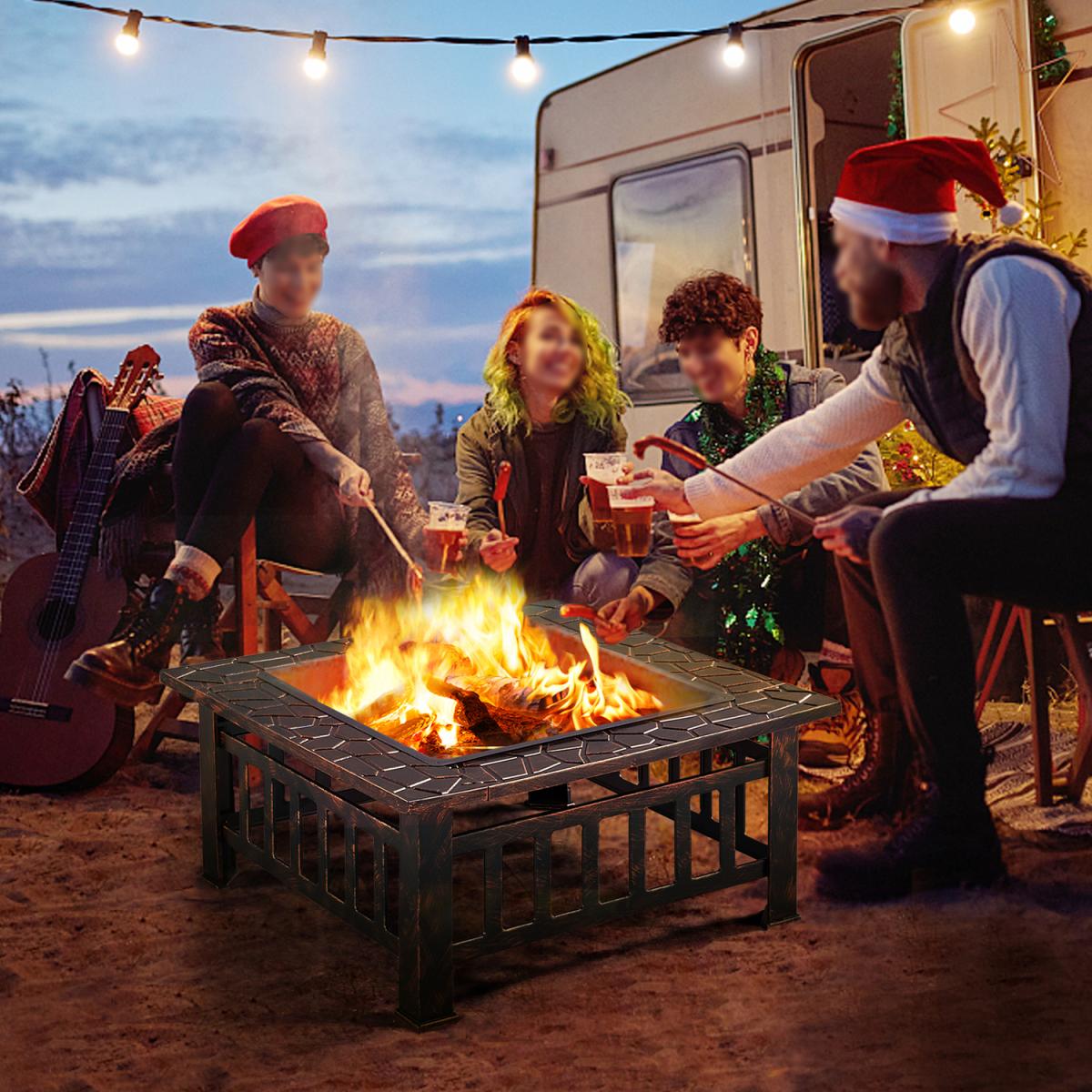 The square metal fire pit for camping adds a robust, industrial touch that works well in contemporary and rustic outdoor settings. I love its copper finish, which introduces warmth and character, making it a perfect statement piece for garden patios or balcony areas. For styling, pairing it with minimalist furniture or natural materials like wood and stone can elevate the overall look. Practical tips include using it as a focal point in outdoor seating arrangements or layering with cosy blankets and solar lanterns for inviting evening gatherings. Its versatile design means it can function as both a source of warmth and a stylish feature, blending form and function effortlessly.