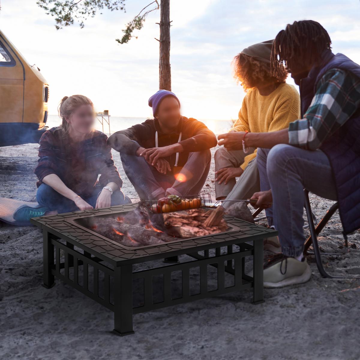 This black square metal fire pit is a versatile piece that works particularly well in modern or industrial outdoor schemes, adding a sleek, contemporary touch. Its minimalist design makes it easy to incorporate into various outdoor setups, from cosy patios to larger garden spaces. When styling, consider pairing it with concrete or wood furniture for a balanced look, and add cushions or throws in earthy tones to soften the overall aesthetic. For practical tips, placing it on a sturdy, heat-resistant surface and keeping safety accessories like a spark protection cover nearby ensure both style and safety. Overall, it's an excellent feature that enhances outdoor gatherings with its clean lines and functional design.