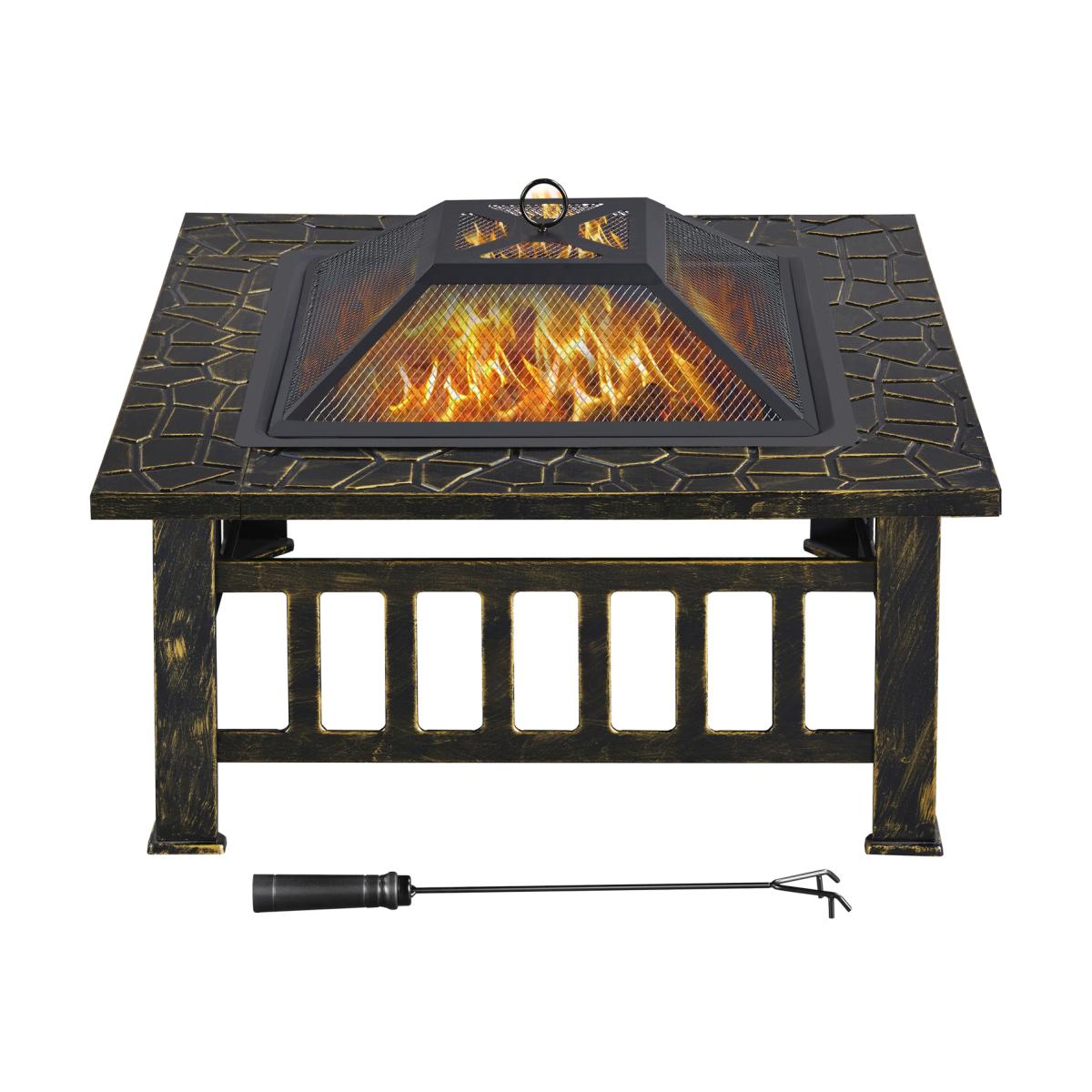 Square Metal Fire Pit with Cover and Poker - Bronze