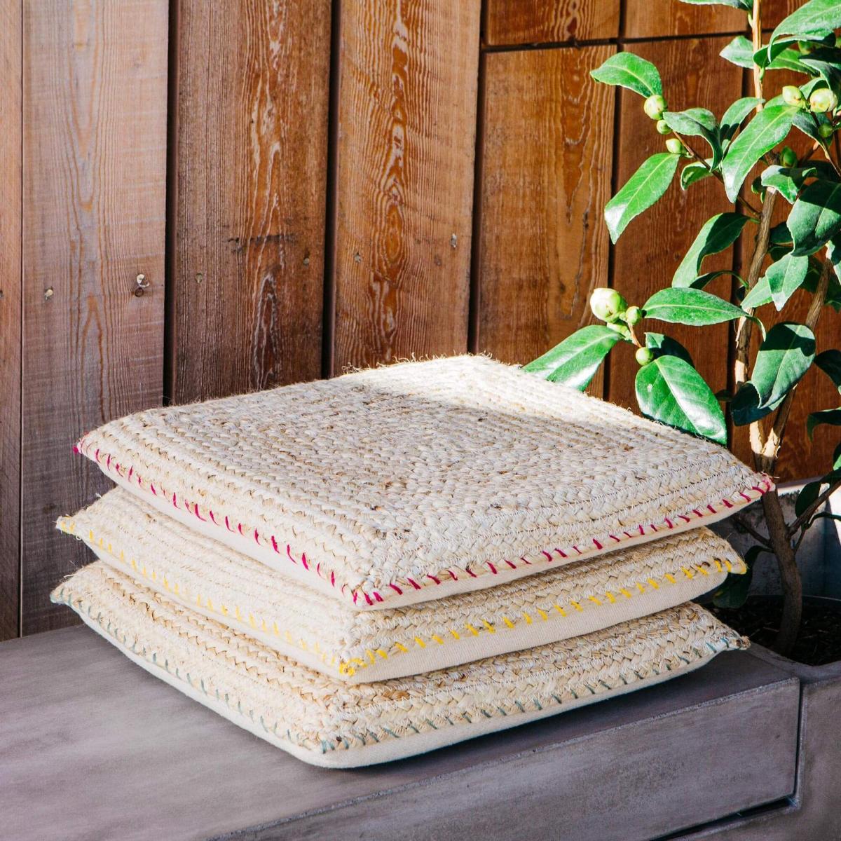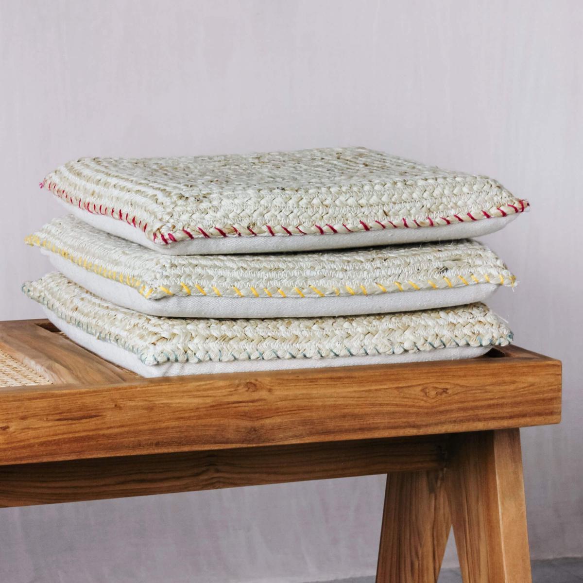 Complement your dining chairs or garden furniture with this square seat pad made from seagrass and finished with a coloured braiding detail.