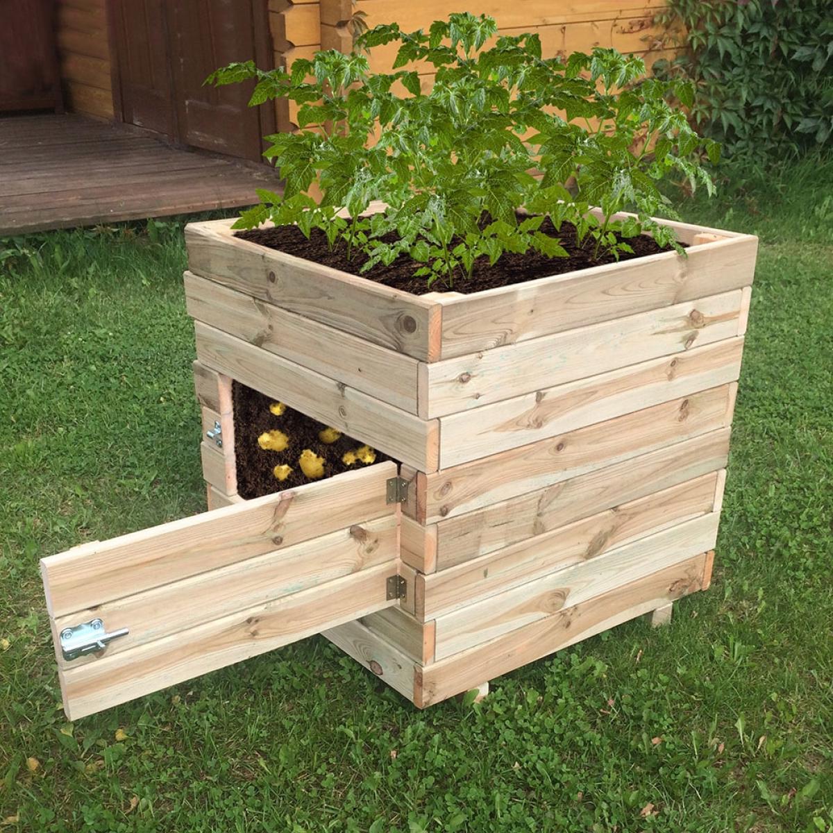Start growing your own with the Square Potato Planter. Designed to eliminate the need for digging, saving your back and knees; plant your chosen varieties and watch them thrive! Once your spuds are ready, easily access your crop with the lockable, hinged door. Not just for potatoes, grow a selection of other root vegetables and plants and enjoy growing and eating your own food! Manufactured from pressure treated, FSC certified wood with galvanised hinges, the solid, durable structure has been built to last. With other planters available here at Cuckooland, start making steps to become more self-sufficient!.