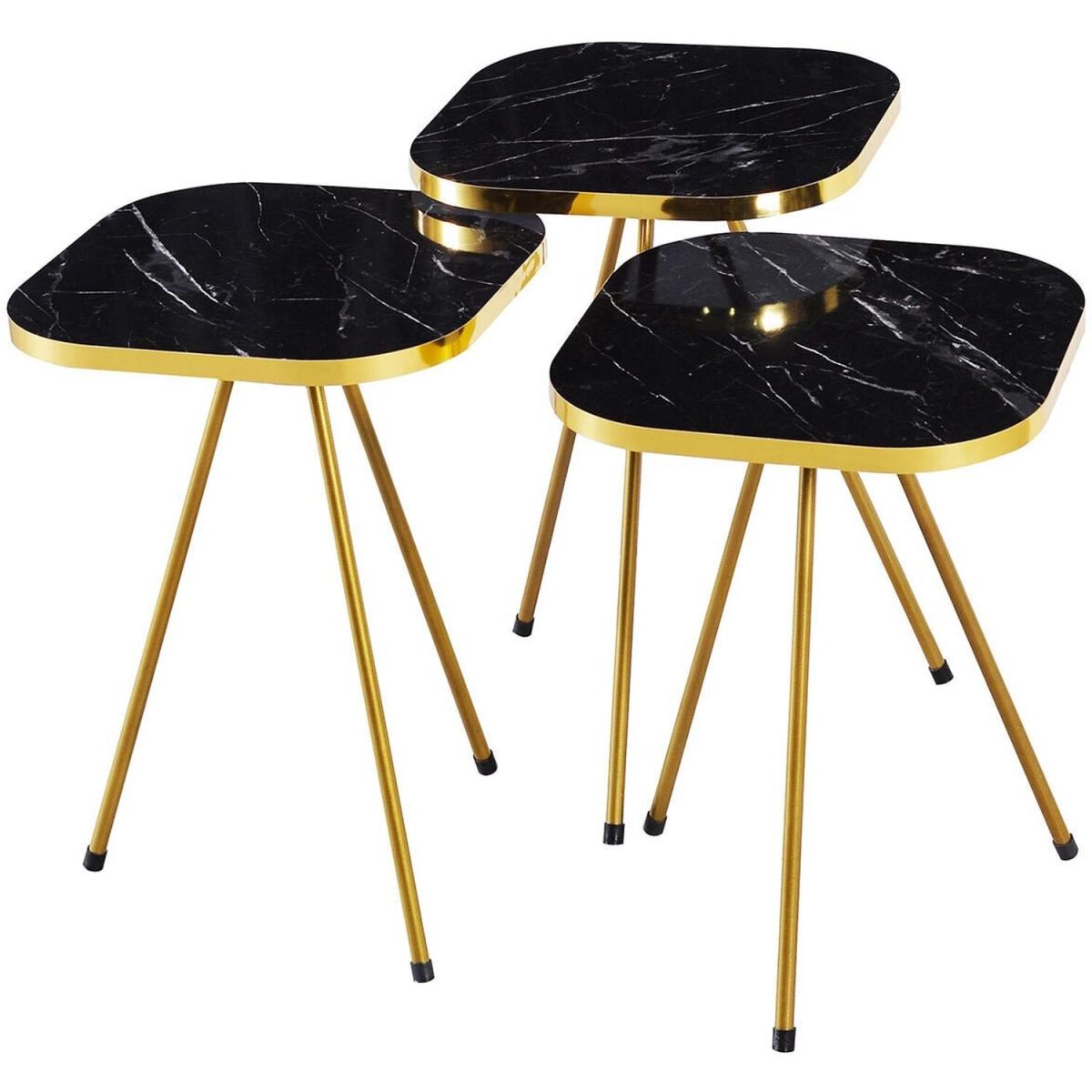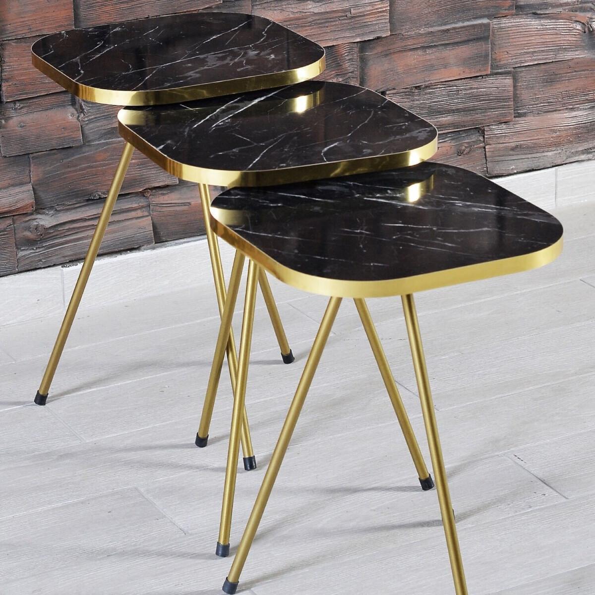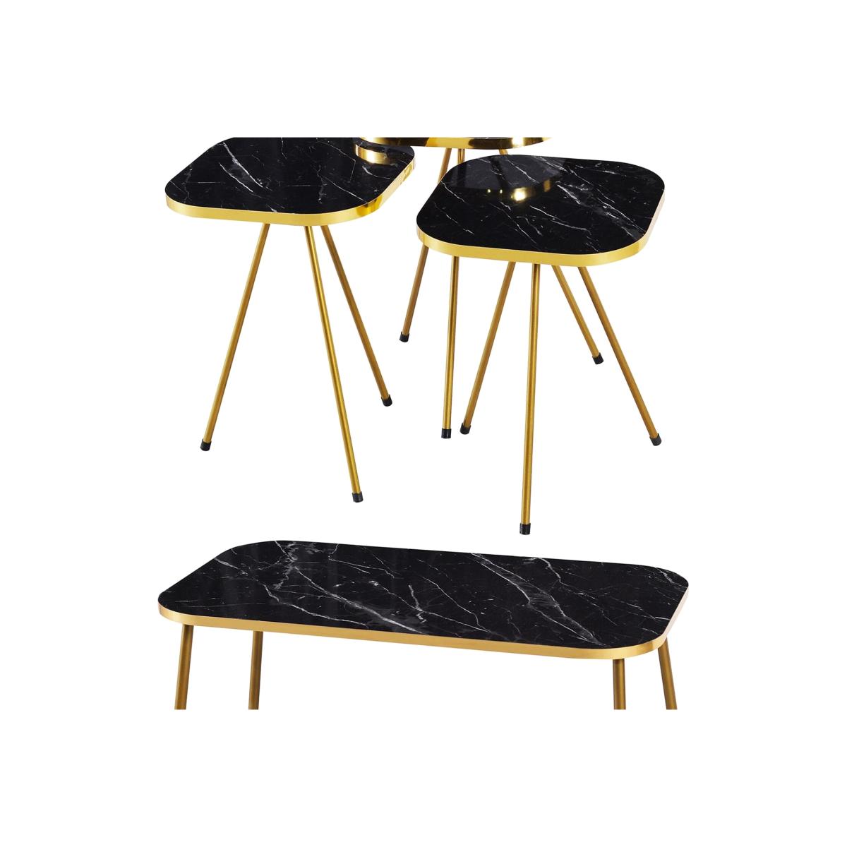 Its worktop is 18mm thick and manufactured using 1st class MDF. Edges covered with 1st-grade PVC tape. Problems such as easy deformation/swelling are prevented. It does not contain carcinogenic substances within E1 Standards. The PVC we use is glossy. The bonding process is done with 1st quality glue. In this way, it provides both a healthy and long-lasting coating. Feet are metal and electrostatic painted. It complies with CE standards. The product is sent as disassembled. It is very easy to assemble the product. You can easily install it with simple hand tools. High quality with style: Living Room Coffee Table Set of 4 features an elegant design with a top and legs that adds a stylish touch to any room. Strong and sturdy small tables are made of high-quality wood material and metal legs. Protective anti-slip foot caps prevent the floor from scratching. Rounded edge design can prevent potential damage and injuries. They are very good choices for indoor and outdoor use.