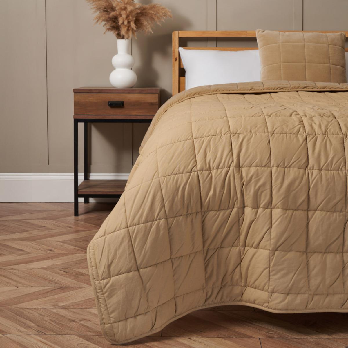 Complete your bedroom look with the Square Stitch Quilted Bedspread in sand. This neutral-toned bedspread offers timeless appeal and cosy comfort. Large and versatile, it’s ideal for layering or standalone use. Sophisticated square-stitch quilting; Versatile neutral sand shade; Generously sized 165x240cm for maximum coverage.
