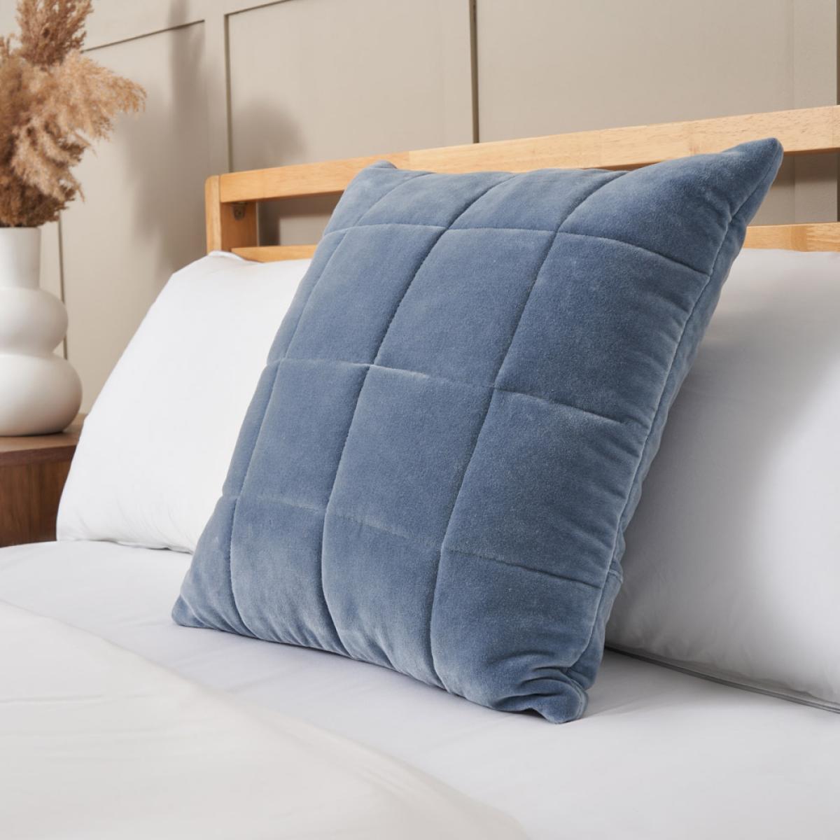 Square Stitch Quilted Cushion, Blue