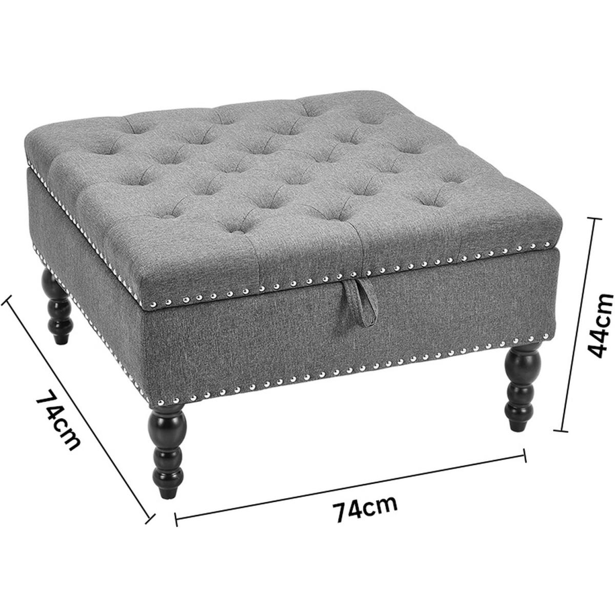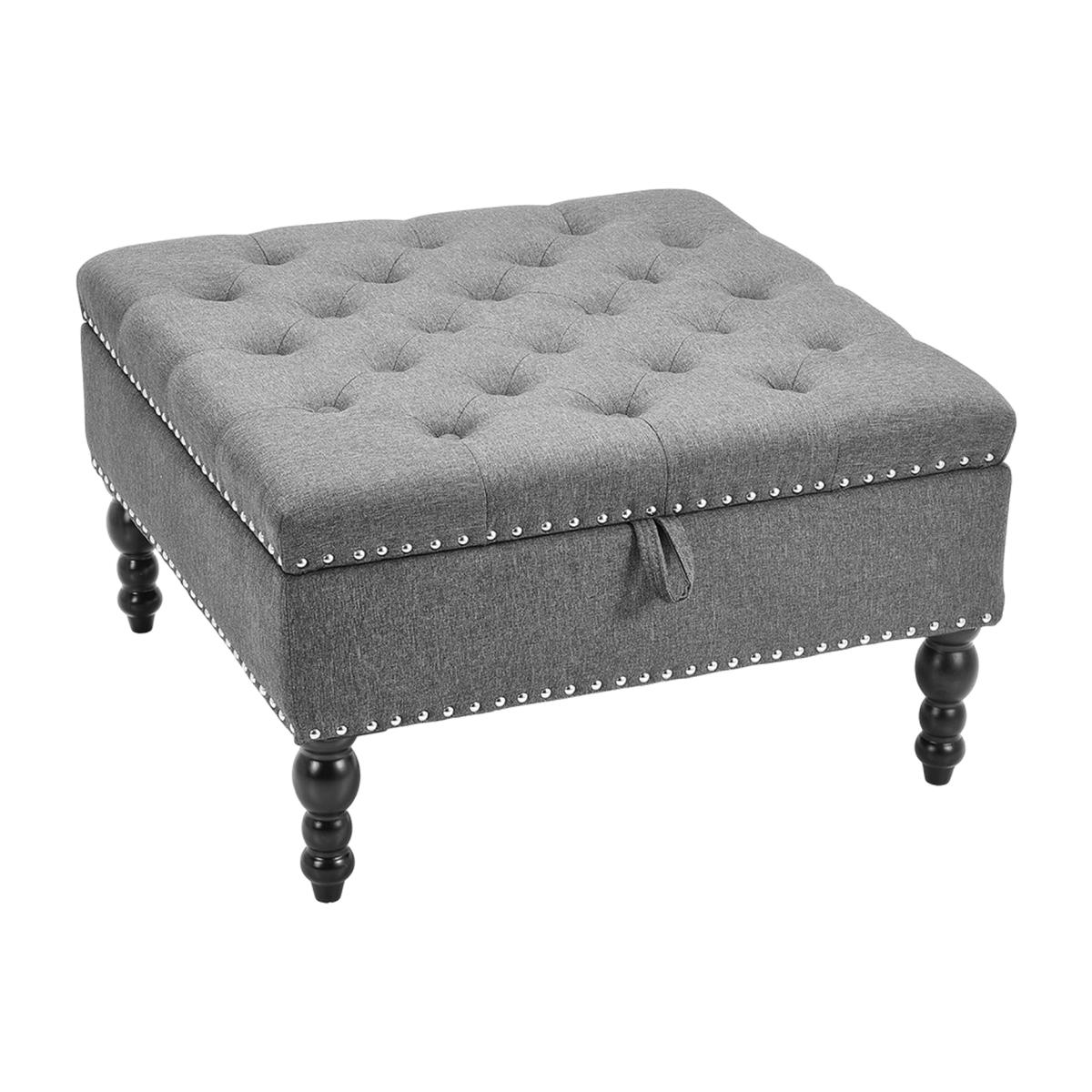 Elevate your home's aesthetic with this elegant square ottoman by Livingandhome. Impeccably button-tufted linen upholstery offers a comfortable and easy-to-care-for seating or footrest solution. Silver nailhead trim and gourd wood legs add a touch of luxury to your decor. But it's not just about style,this ottoman is highly practical too. Lift the flip-up lid, revealing a spacious hidden storage compartment to tuck away essentials neatly. The strong wooden frame ensures stability, making this ottoman perfect for various uses, whether it's an extra seat in the entryway, a storage ottoman beneath the window, or a chic coffee table in your living room.