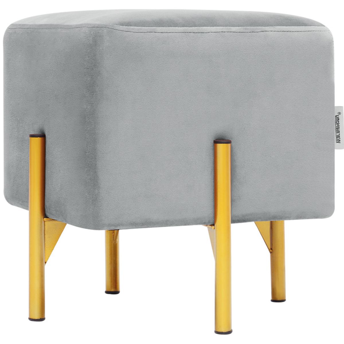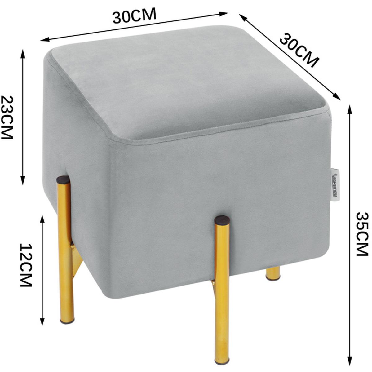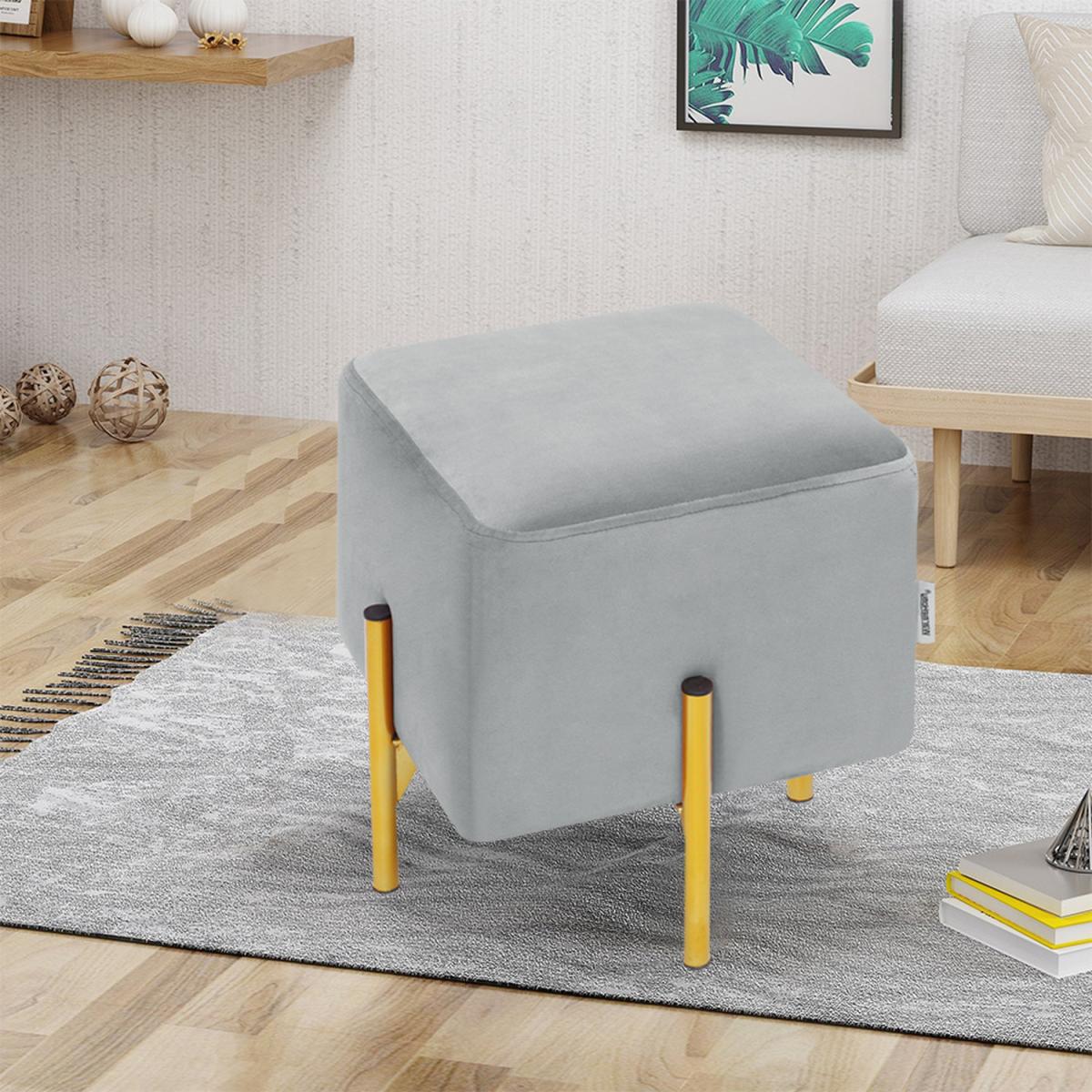 Square Velvet Ottoman - Grey