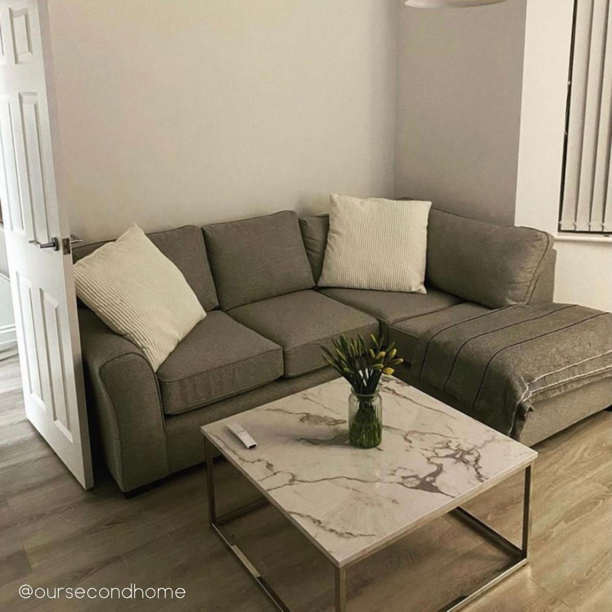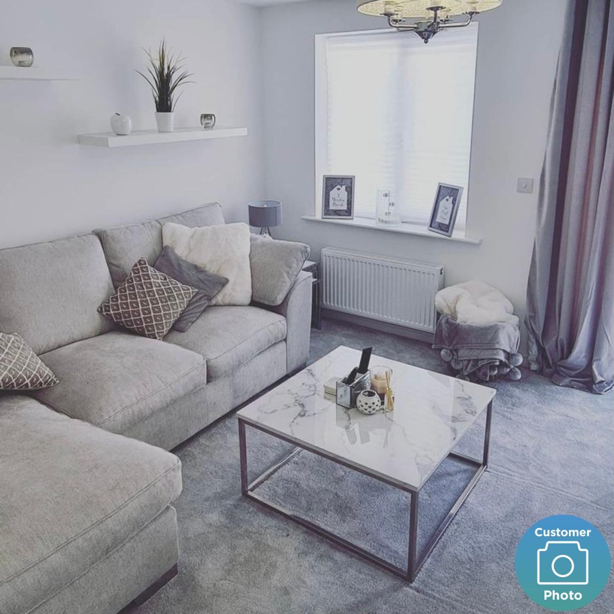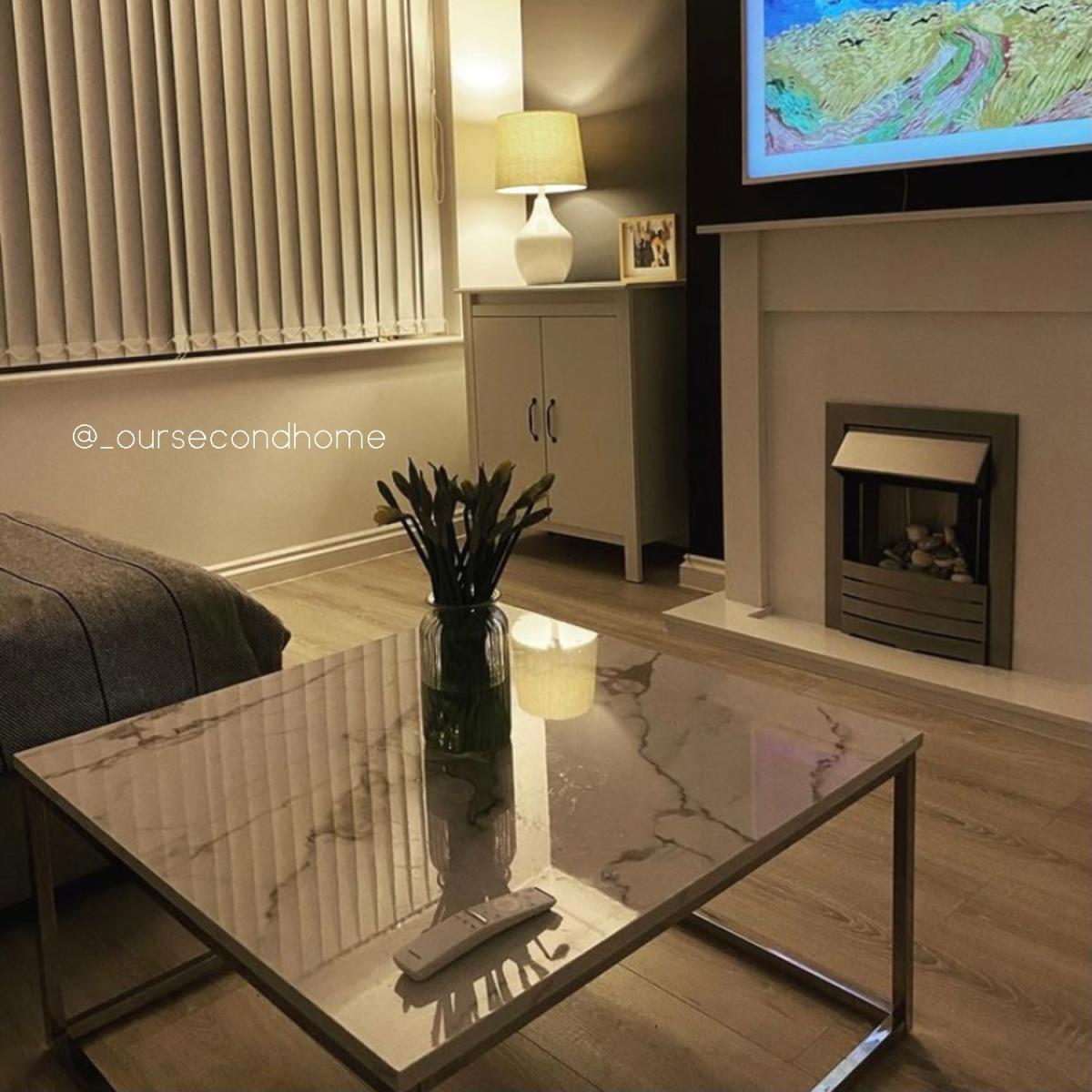 Features we love Square coffee table with marble effect top Open chrome base creates the illusion of space Modern design complements any living room. Durable lacquered finish offers style that lasts. Matching pieces available just search Demi. All about me. This small and handy coffee table is the perfect addition to any living room. With a lacquered marble design it’s modern contemporary feel will suit a wide range of spaces. The open square chrome base creates the illusion of space and also offers a handy space to put folded throws/blankets. Discover the matching pieces in the range online too the matching side table or console table would be an excellent fit with this coffee table. Need to know. Dimensions. H40 x W80 x D80cm Weight. 13kg Colour. White Finish. High gloss lacquer and polished stainless-steel Material. MDF and stainless-steel Assembly required. Yes..