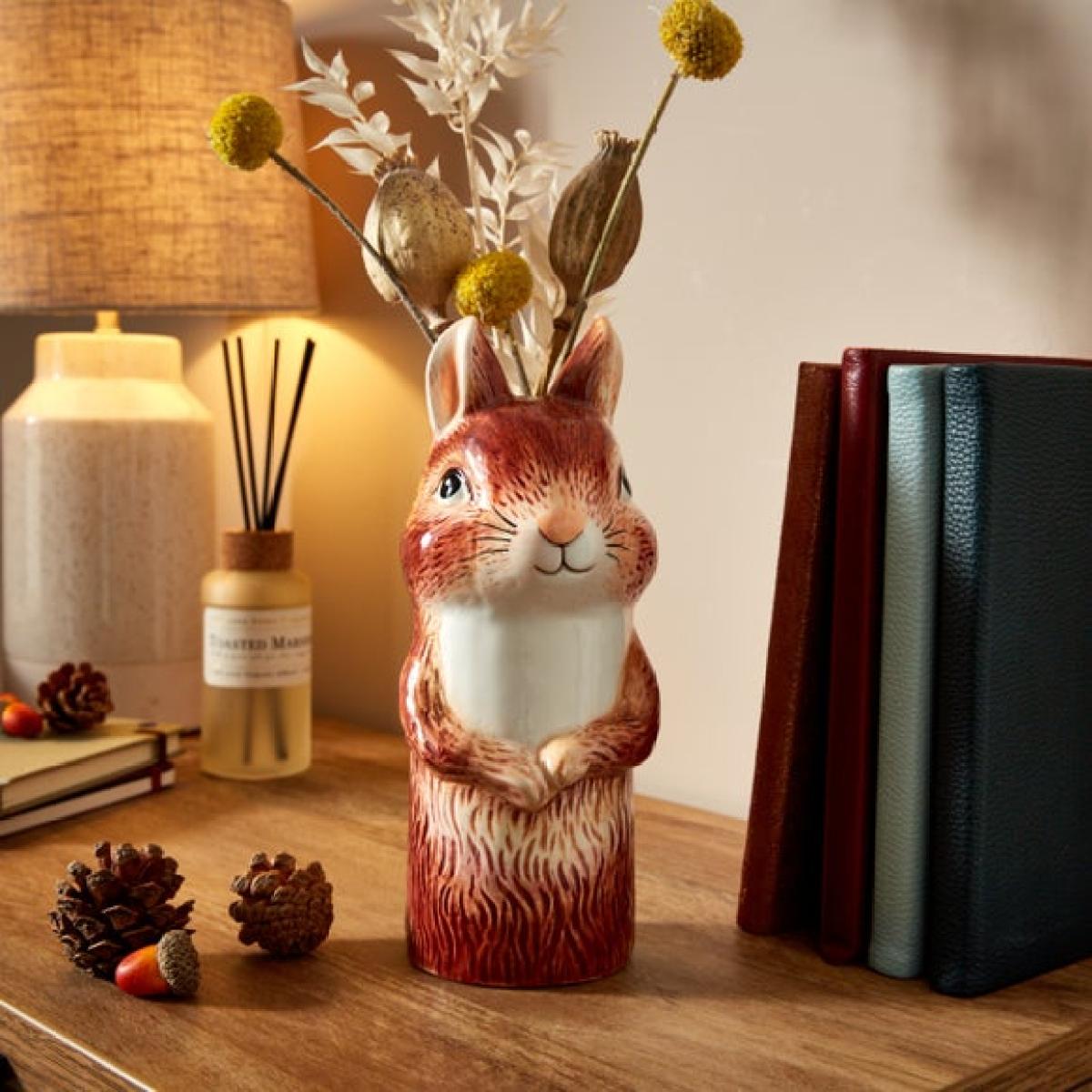I love this squirrel vase for its playful and whimsical charm, making it a fun statement piece in both casual and eclectic interiors. Its quirky design works well in living rooms, bedrooms, or children’s spaces where a touch of personality is appreciated. Practical styling tips include pairing it with dried flowers or grasses to enhance its natural feel, or using it as a standalone decorative accent on shelves or sideboards to add a touch of humour and character. Its size and shape make it versatile, so it can easily be incorporated into a variety of colour schemes, especially those leaning towards warm, cosy, or vintage styles.