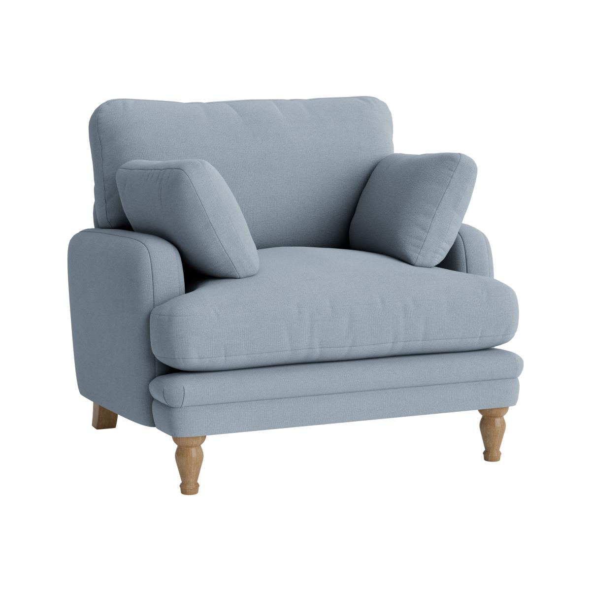 I love this armchair because of its inviting, chubby silhouette and soft pastel hue, making it perfect for creating a cosy corner or adding a touch of colour to a neutral space. It works well in both contemporary and traditional interiors, especially when styled with layered textures like plush throws or patterned cushions to emphasise its relaxed vibe. Practical styling tips include pairing it with a small side table and a statement lamp for functionality, or anchoring it with a contrasting rug for visual interest. Its rounded shape and soft fabric also make it excellent for family rooms or casual living spaces where comfort is key.