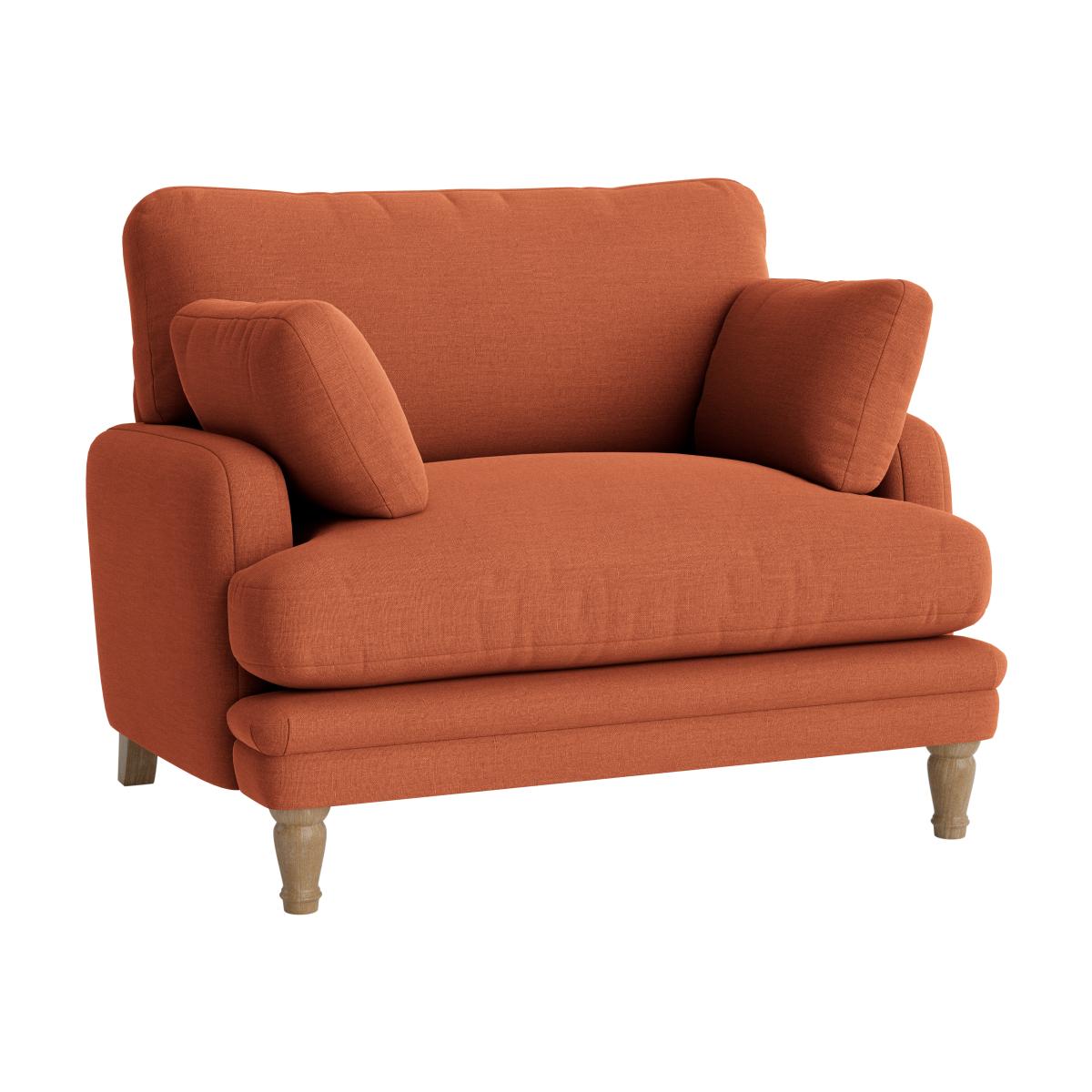 I love this sofa for its inviting shape and versatile colour, making it a real standout piece that works well in both cosy apartments and more eclectic interiors. Its slightly vintage feel pairs effortlessly with mid-century or contemporary styles, and the warm terracotta hue adds a touch of warmth to neutral schemes. Practical styling tips include pairing it with textured cushions or throws in complementary colours to add depth, and placing it against a patterned or muted wall to let the sofa be the focal point. It’s also an ideal size for small living rooms or as a statement piece in a larger space, offering comfort without taking up too much room.