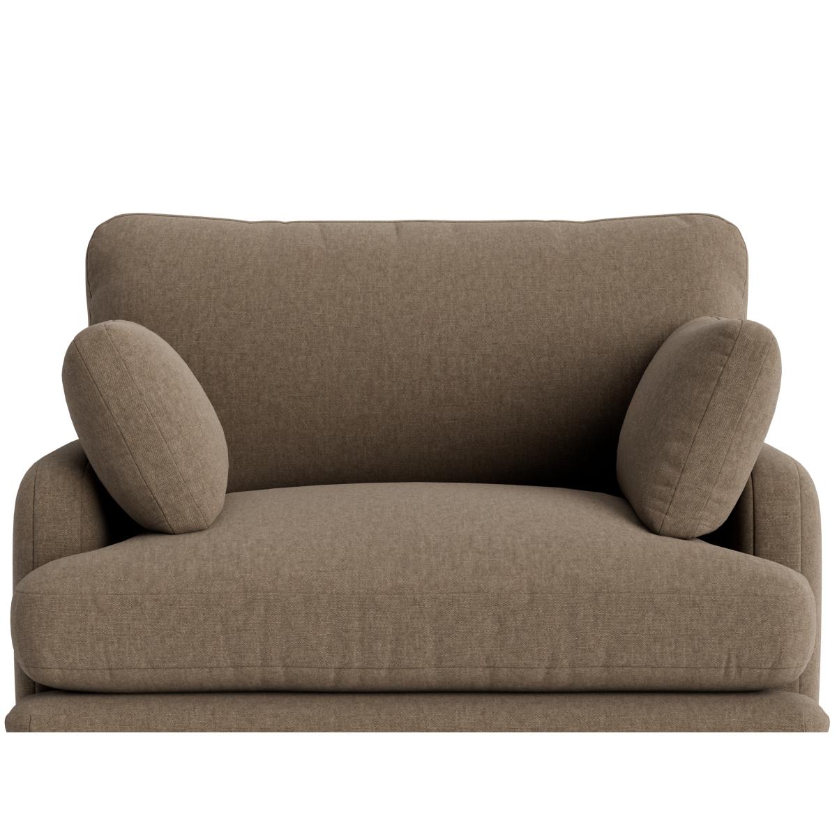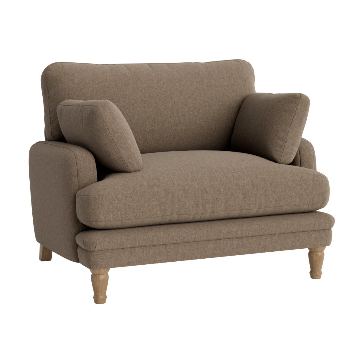 The Squisharoo love seat is a fantastic choice for adding cosy charm to smaller living spaces or casual areas. I love its versatile design, which can work equally well in both contemporary and traditional interiors thanks to its neutral tone and simple silhouette. To style it effectively, consider pairing it with textured cushions or throws in soft, muted hues for a relaxed vibe, or contrasting it with bold accents for a more modern look. Its slightly plump proportions make it perfect for creating an inviting corner, while the sturdy wooden legs add a touch of understated elegance. This piece is practical too, as it offers a comfortable spot for both relaxing and entertaining without overwhelming your space.