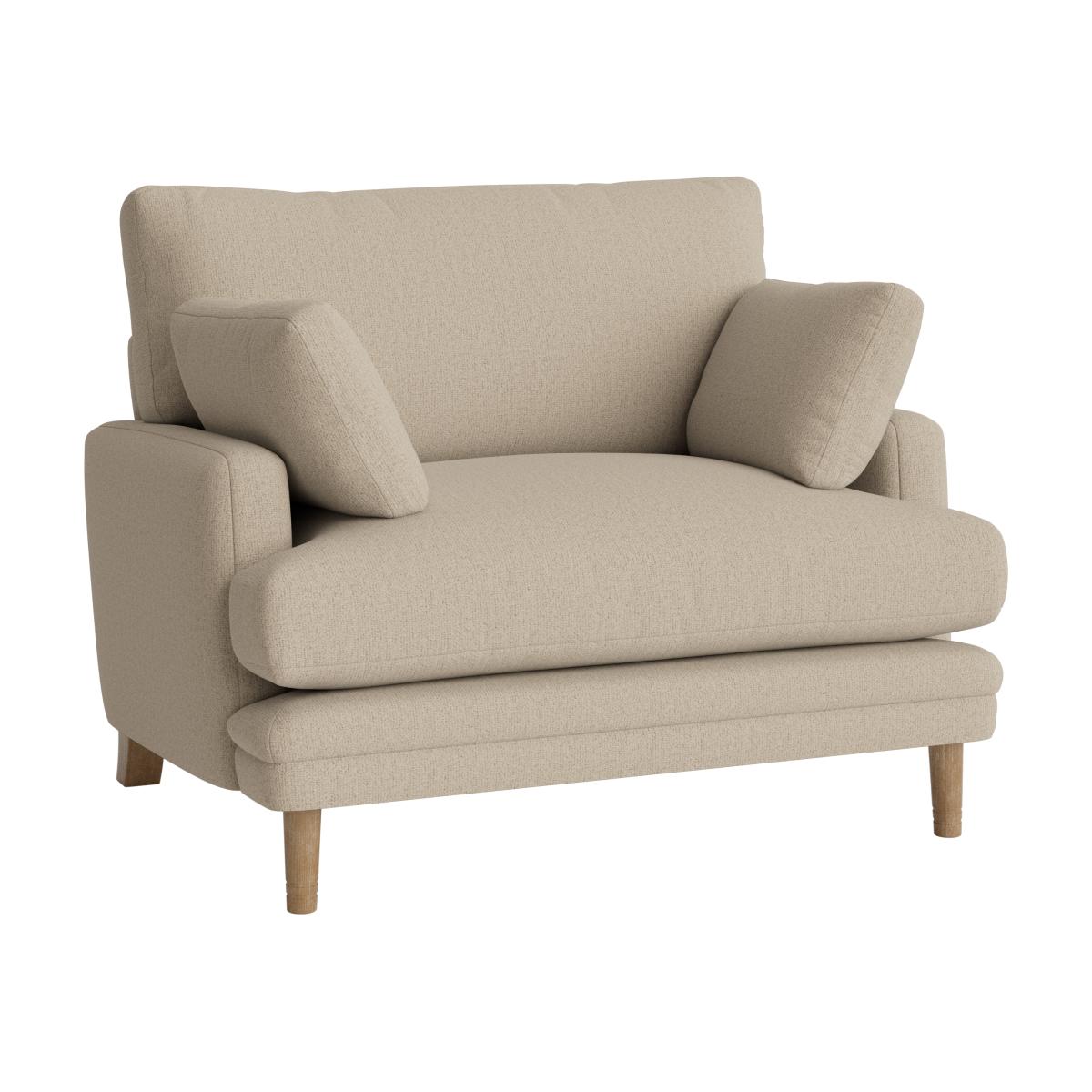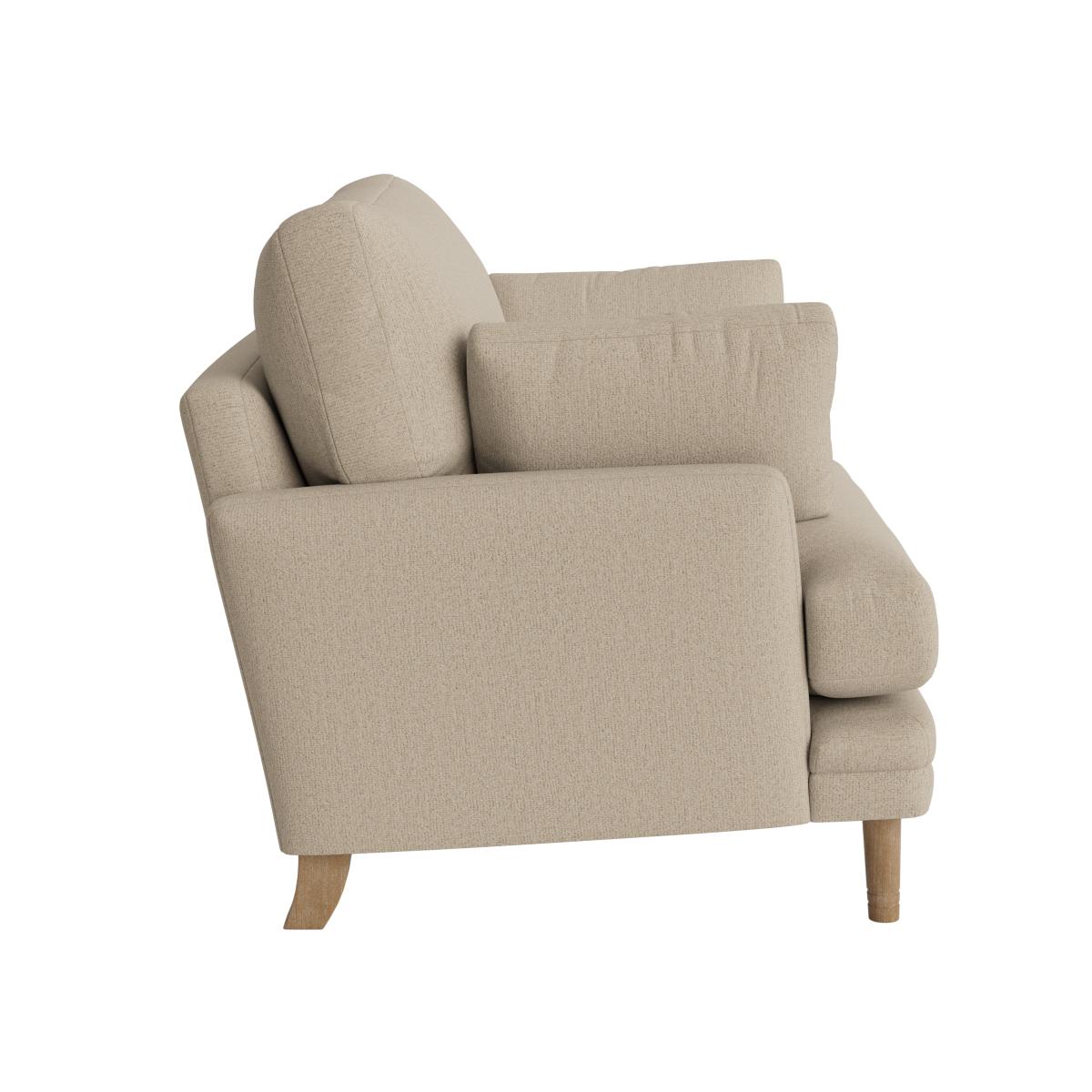 I love this little love seat for its versatility and understated style. Its clean lines and neutral tone make it a great anchor piece in a variety of interiors, from contemporary to traditional. It works especially well in cosy flats or as a charming addition to a larger living room, offering a welcoming spot for lounging or casual conversation. To style it effectively, consider layering with textured cushions and throws in soft colours or subtle patterns to add warmth and personality. Pairing it with a small, round side table can also enhance its practicality, making it a perfect choice for a relaxed yet refined space.