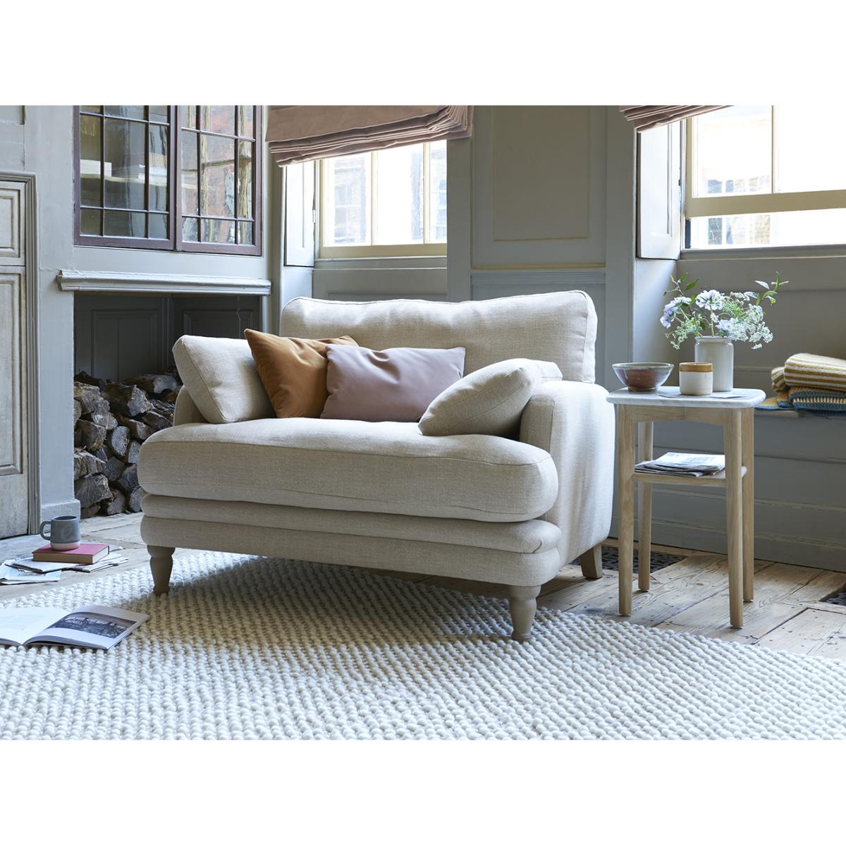 The squisharoo love seat is a versatile piece that can add both comfort and character to a variety of interiors. I love its cosy, inviting shape, making it perfect for relaxed family rooms, relaxed living spaces, or even a cosy nook in a bedroom. Its soft, muted colour offers flexibility, working well with both neutral and pastel colour schemes, and it pairs nicely with textured soft furnishings or bold accessories for a personalised look. Practical styling tips include layering with patterned cushions or throws to add depth, and placing it beside a wooden or metallic side table to create a functional, lived-in vibe. Its compact size makes it ideal for smaller spaces or corner arrangements, providing a stylish spot to unwind without overwhelming the room.