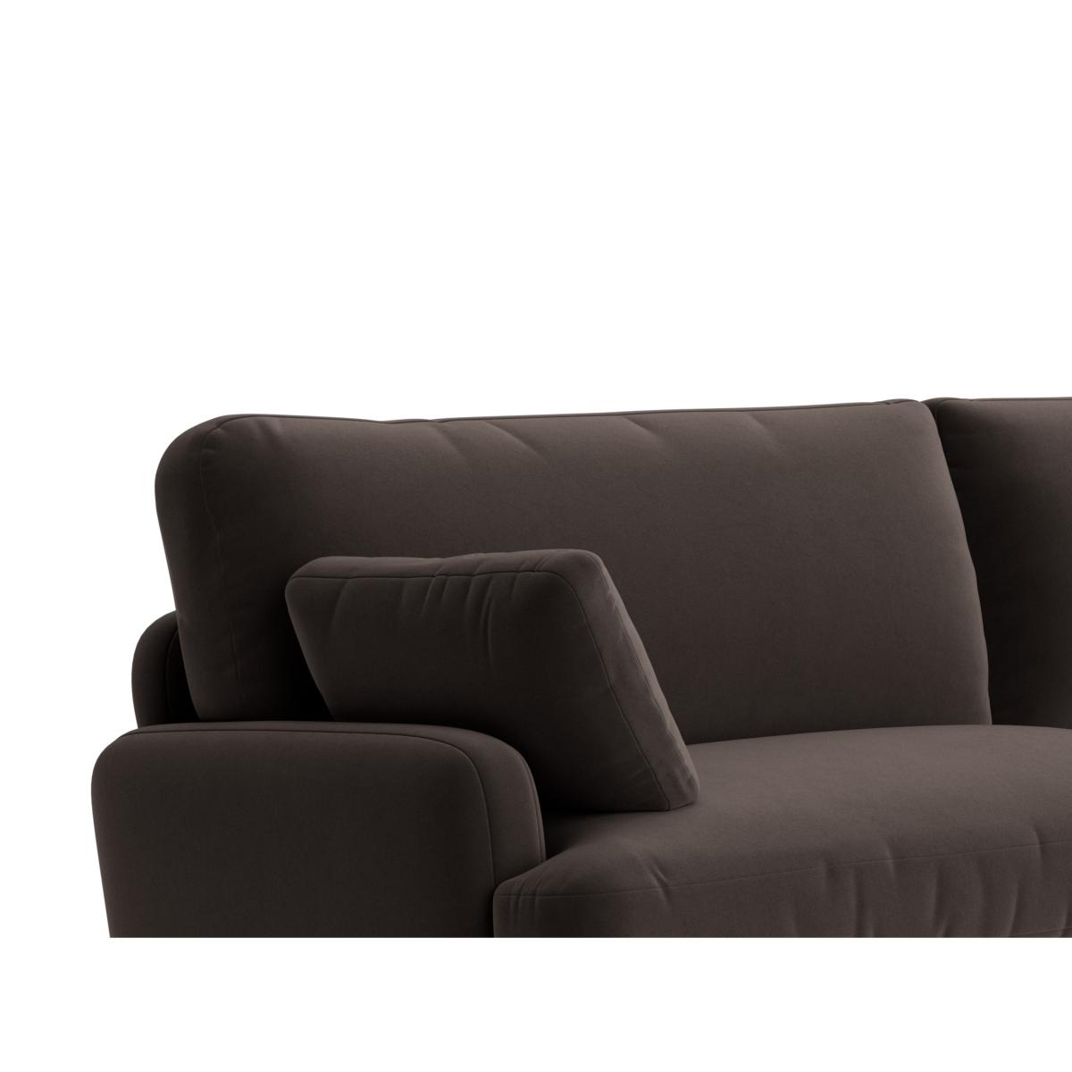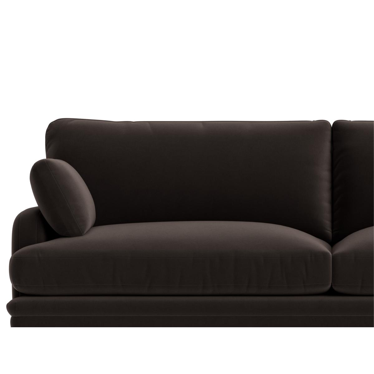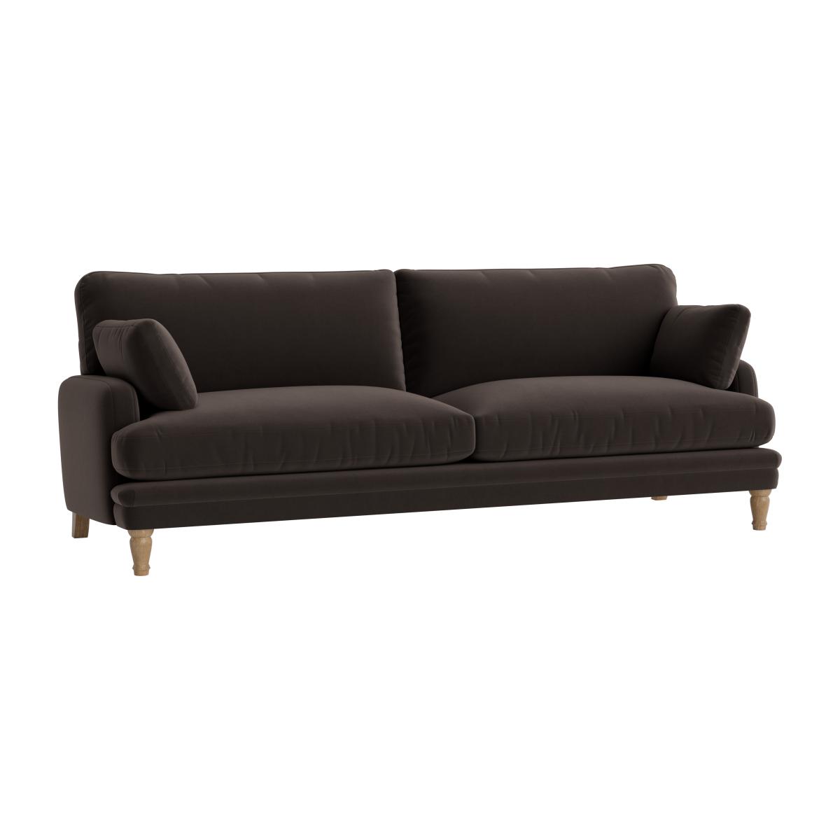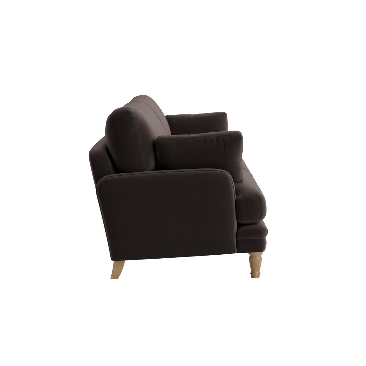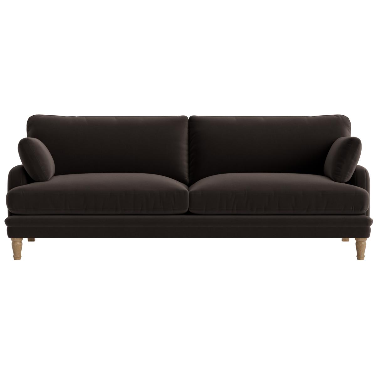 I love this sofa for its inviting, plush look that works well in both contemporary and classic interiors. Its relaxed silhouette and comfortable cushions make it perfect for an informal living space or family room, while the dark upholstery adds a touch of sophistication. For styling, consider adding textured cushions and a cosy throw to make it more inviting and personalise it with some contrasting colours or patterns. It pairs well with neutral or muted colour palettes but can also serve as a statement piece in a more eclectic setting. Practical tips include placing it near a coffee table for convenience and complementing it with layered rugs or side tables to complete the cosy, lived-in feel.