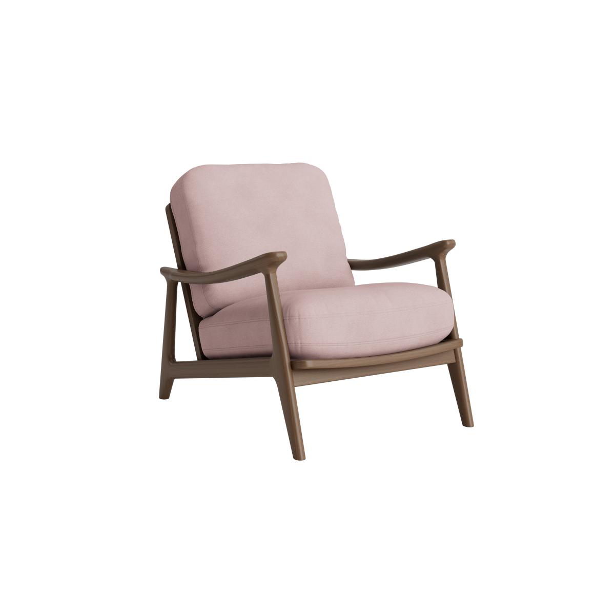 I love this chair for its versatile style and subtle colour palette. The dark oak frame adds warmth and contrast, making it suitable for both modern and traditional interiors. Its soft Pressed Petals fabric provides a cosy feel, perfect for a living room reading nook or a cosy corner in a bedroom. When styling, consider pairing it with neutral-toned cushions or a textured throw to accentuate its relaxed vibe. This chair works well in spaces that aim for a blend of comfort and understated elegance, especially when combined with natural materials or muted colour schemes to keep the overall look cohesive.