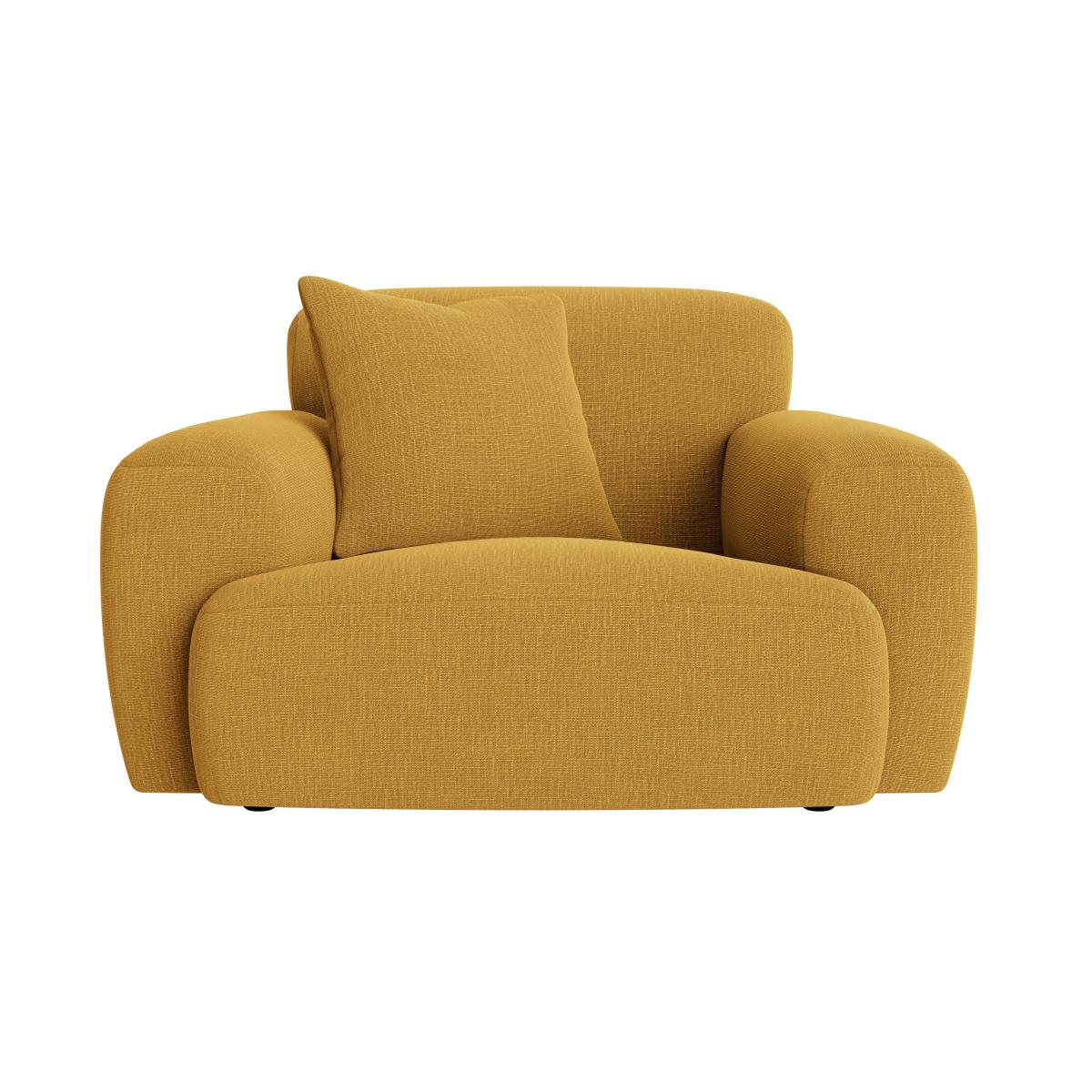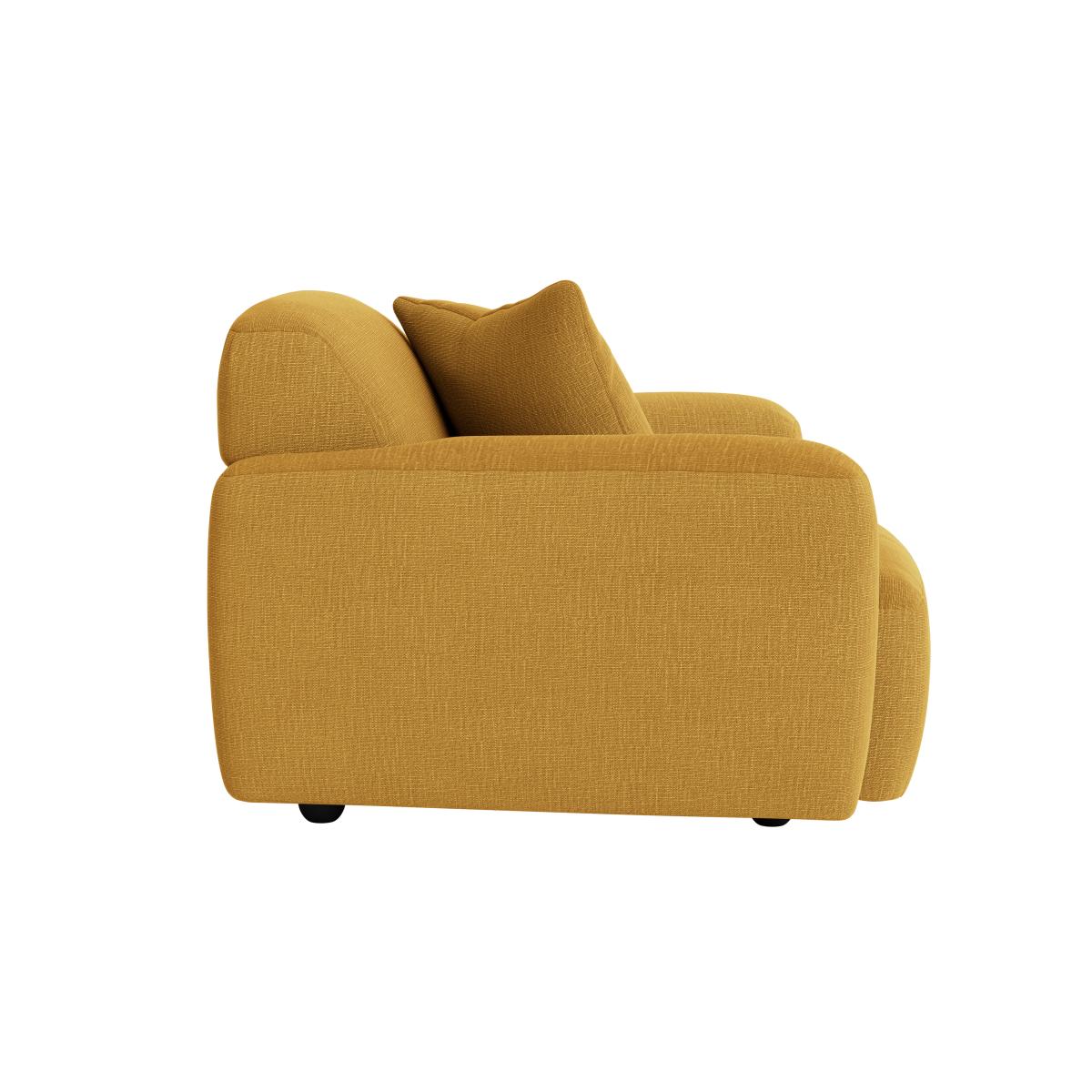 I love this little love seat for its bold colour and contemporary silhouette, making it a versatile piece that can anchor both relaxed and modern interiors. It works well in casual living rooms, cosy nooks, or even eclectic spaces where a pop of colour is needed. When styling, consider pairing it with neutral or muted tones to let the bright yellow truly stand out, or complement it with textured throws and cushions for added comfort. Its compact form also makes it ideal for smaller spaces or as a secondary seating piece in larger rooms, offering practicality without sacrificing style.