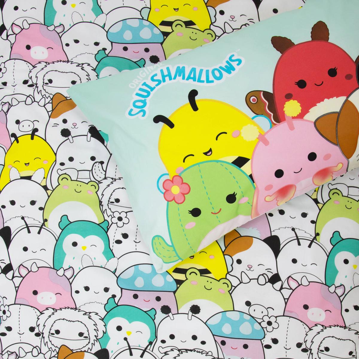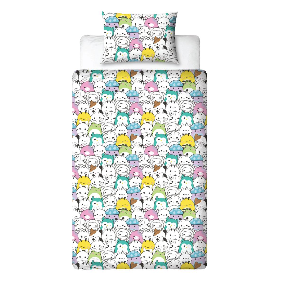 * Fun Squishmallows design * Reversible * Duvet cover and pillowcase Bright, playful, and bursting with colour, this Squishmallows bedding set is perfect for little fans of Cam the Cat, Winston the Owl, Patty the Cow, and Wendy the Frog. With a bold, eye-catching design on one side and a fun monochrome pattern on the reverse, it’s easy to switch up the look of your child’s bedroom in seconds. Made from a soft polycotton blend, it’s as comfy as it is durable. The popper fasteners make changing and washing hassle-free, so you can keep things fresh with minimal effort. Machine washable and tumble dryer safe on a low heat, it’s designed for everyday practicality. This collection is verified by OEKO-TEX® and independently tested for harmful substances as well as manufactured using sustainable processes under socially responsible working conditions.
