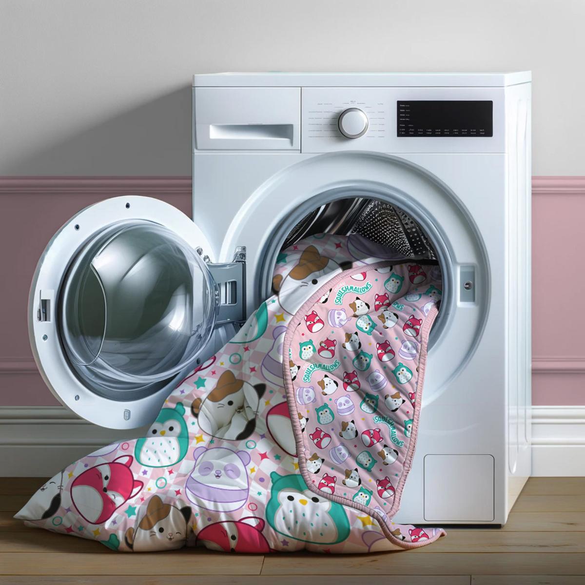 * Includes 1 Standard Pillowcase and Reusable Carry Bag* Warm and Cosy 10.5 Tog Duvet* Reversible design* Machine Washable* Soft and Durable Transform bedtime into a cozy cuddle session with the Squishmallows Coverless Duvet Set. Ideal for fans of the ultra-soft plush toys, this bedding set features a 10.5 Tog duvet that offers year-round warmth and comfort. The innovative coverless design eliminates the hassle of duvet covers—just wash the entire duvet and pillowcase together. Made from high-quality, durable materials, this set also includes a reusable carry bag for easy transport and storage. The vibrant Squishmallows design ensures that bedtime is not just comfortable but also filled with fun, making this set a practical and adorable choice for any Squishmallows fan.