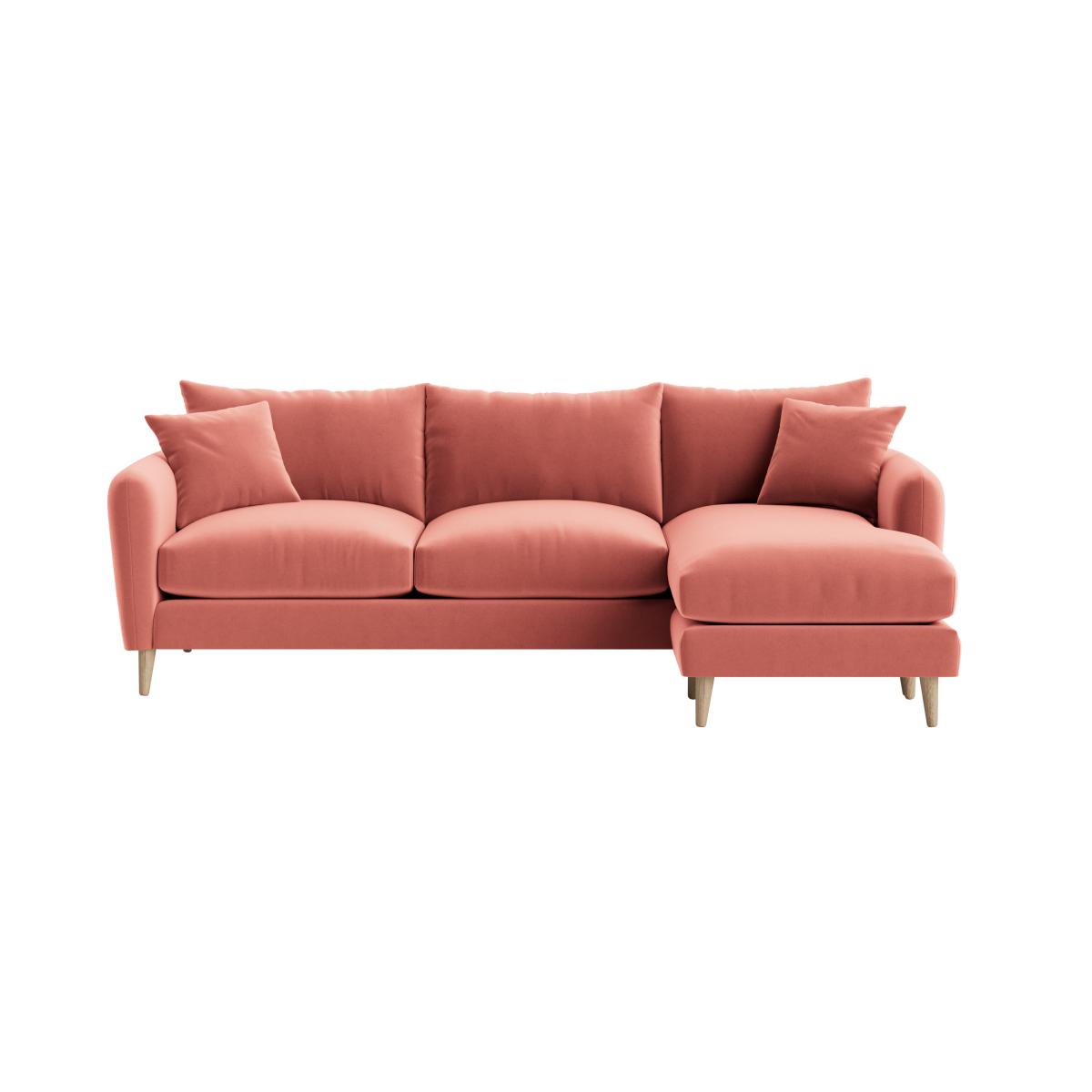 I love this one for its inviting, plush look that instantly softens a room's vibe. It's perfect for both contemporary and eclectic interiors, especially in cosy living spaces where comfort is key. The pink velvet finish adds a touch of luxury but remains versatile enough to pair with neutral palettes or bold patterns. When styling, consider balancing it with minimalist coffee tables and subtle accessories to avoid overwhelming the eye. Also, since it’s a corner sofa, it’s ideal for larger rooms or open-plan spaces where its shape can define seating zones. A good tip is to add quilted or patterned cushions for extra texture, creating a layered, lived-in feel that invites relaxed gatherings.