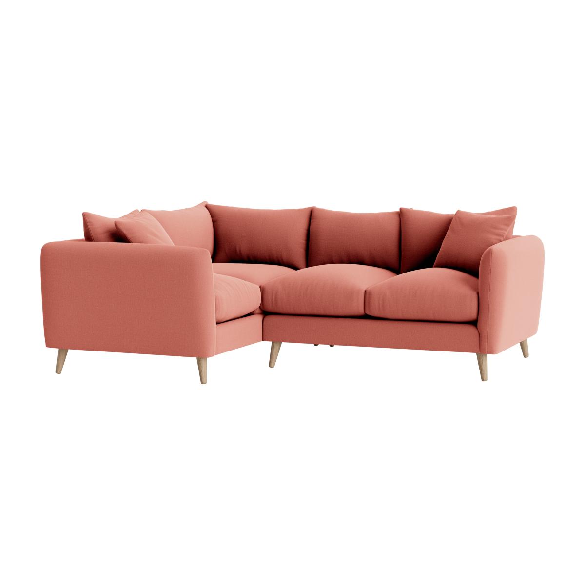 I really like this corner sofa-it’s a versatile piece that works well in various interiors, from cosy modern flats to more relaxed, contemporary living rooms. The soft pink hue adds a subtle pop of colour without overwhelming, making it easy to style with neutral tones or bold accent pieces. It’s perfect for creating a welcoming, laid-back vibe, and its generous shape encourages lounging and socialising. For styling tips, try pairing it with textured cushions and layered throws for added comfort. Keep the surrounding decor minimal or matching in similar warm tones to enhance its cosy appeal; it’s a practical statement piece that combines style with everyday usability.