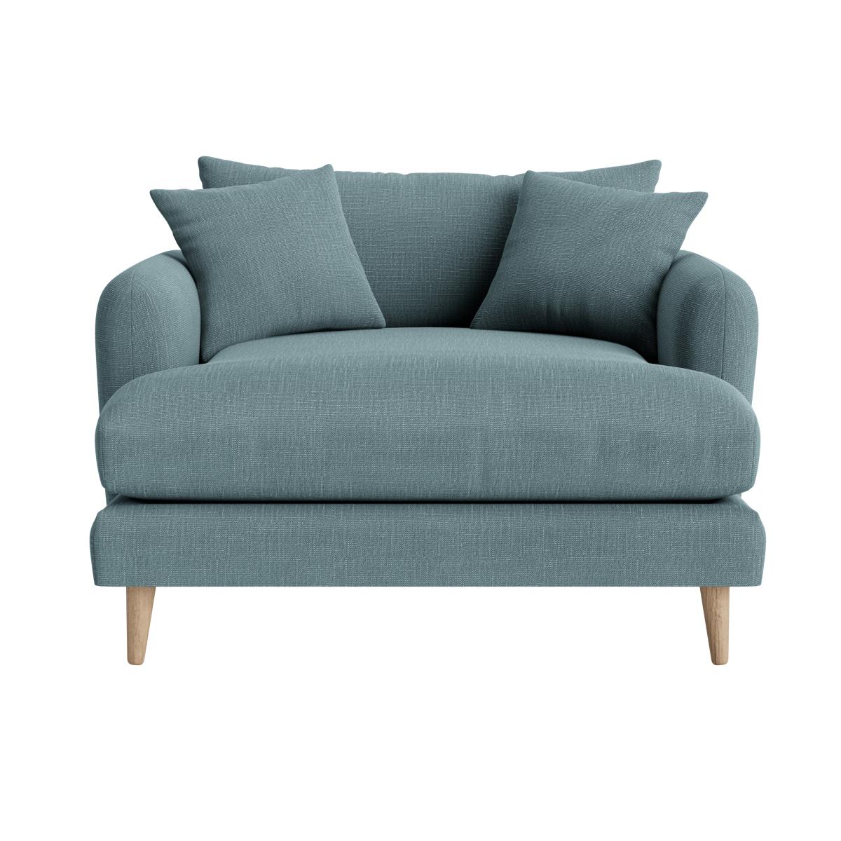 I love this little number for its compact, cosy appeal and versatile design. It works particularly well in contemporary or Scandi-inspired interiors, where its soft colour and clean lines add a gentle touch of colour without overwhelming the space. The squishmeister's relaxed silhouette and rounded edges make it perfect for creating a casual, inviting zone, especially in a small living room or a cosy reading nook. For styling, consider pairing it with textured cushions in muted tones or subtle patterns to enhance its comfort factor. It’s also great when contrasted with more structured furniture like a sleek coffee table or geometric rugs, framing it as a focal point while maintaining a laid-back vibe.
