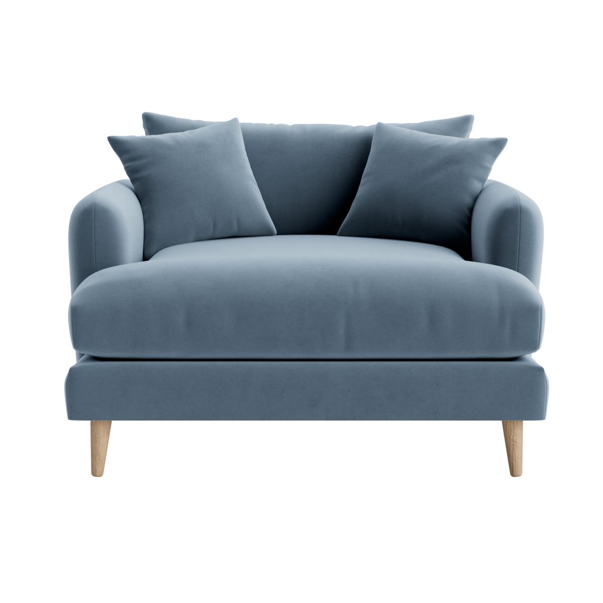 I love this cosy love seat because of its inviting silhouette and soft, muted colour, which works beautifully in both contemporary and retro-inspired interiors. It's versatile enough to sit comfortably in a living room, bedroom nook, or even a stylish home office corner. To style it effectively, consider pairing it with textured cushions in contrasting hues to add visual interest or drape a throw for a relaxed vibe. Its smaller size makes it an excellent choice for spaces where space optimisation is key, and it pairs well with light wooden or brass accents to keep the look fresh and balanced. Overall, it’s a practical yet elegant addition to any interior that calls for a comfy, stylish seating solution.