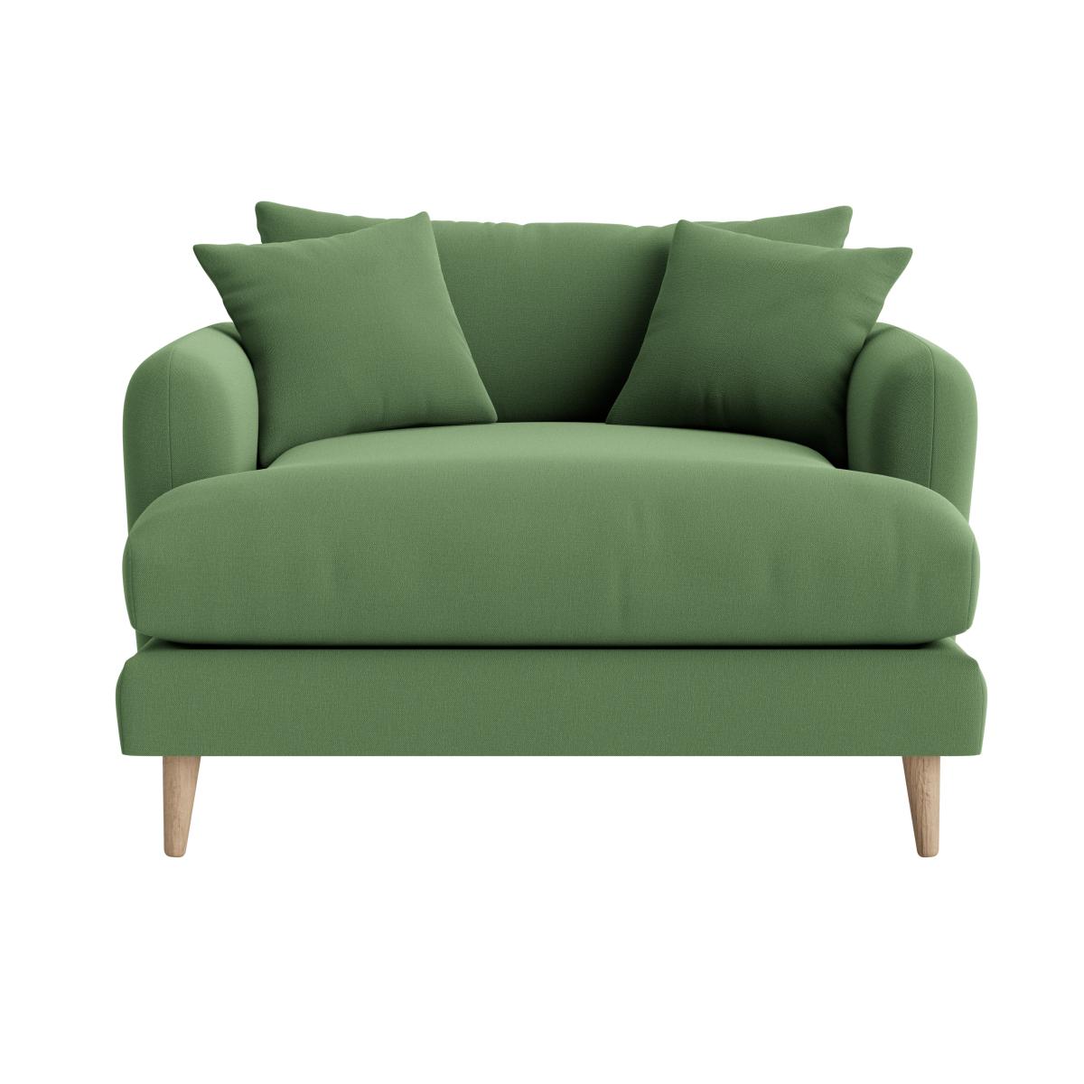I love the loveseats because of their versatile charm and comfort-this one, in particular, works beautifully in both modern and eclectic interiors. The bright green colour adds a lively touch, making it a statement piece without overwhelming the space. It pairs well with neutral tones or patterned fabrics for added interest. Practical styling tips include layering with textured cushions or throws to create a cosy look, and placing it alongside other mid-century inspired furniture for a cohesive aesthetic. Its compact size makes it perfect for smaller living rooms or as an extra seating option, while the soft, inviting form encourages relaxation and socialising.