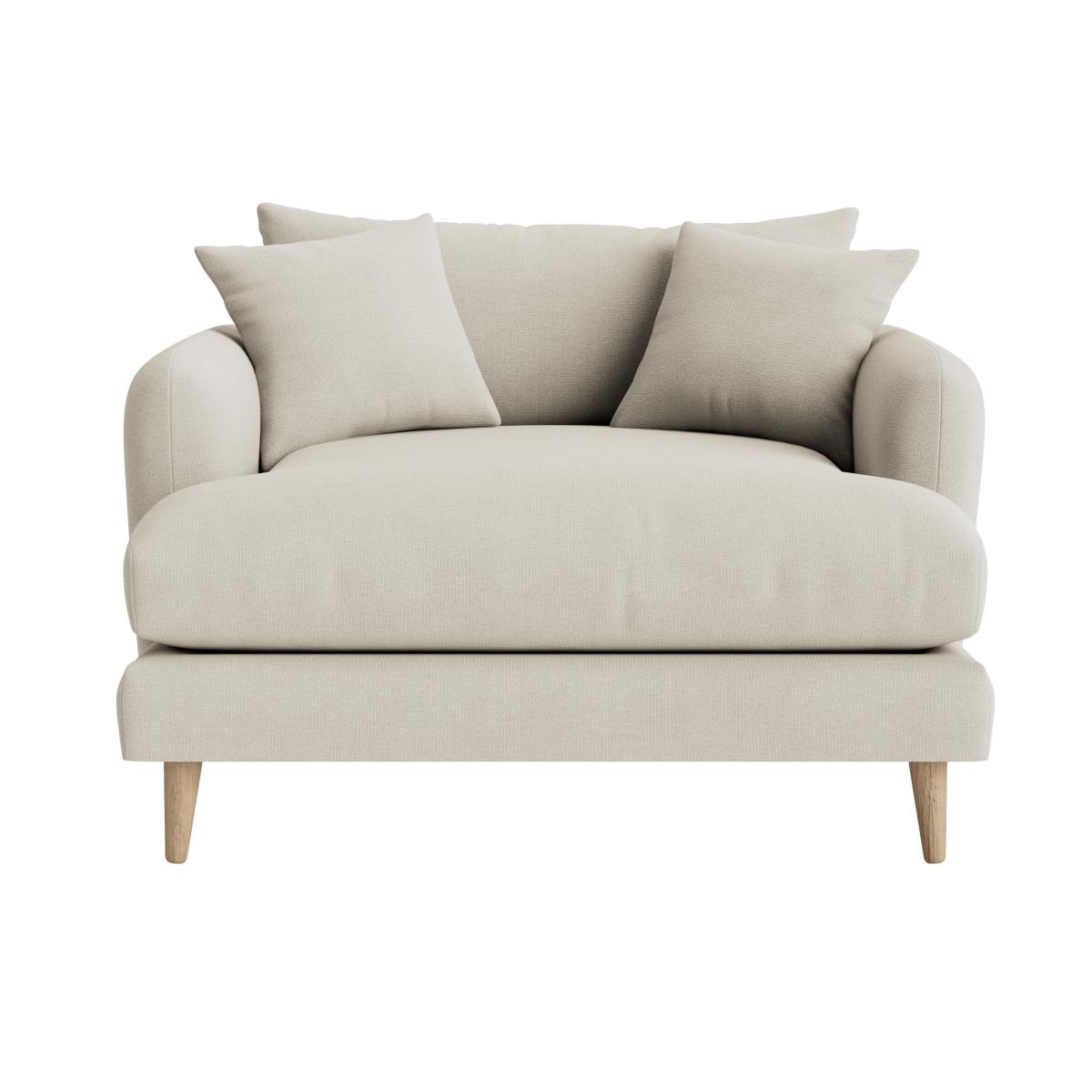 I love this little sofa for its versatile and timeless appeal. The Squishmeister works particularly well in cosy, contemporary interiors, adding a touch of understated elegance without overpowering the space. Its neutral hue makes it easy to style with a variety of colour schemes, from soft pastels to richer tones. To keep it looking fresh and inviting, pair it with textured cushions and a throw for extra comfort. It's ideal for smaller living rooms or studio apartments, and its clean lines ensure it won't feel bulky. Practical tips include placing it near natural light to highlight its soft fabric, and using low-profile or tapered legs to enhance the sense of space and lightness.