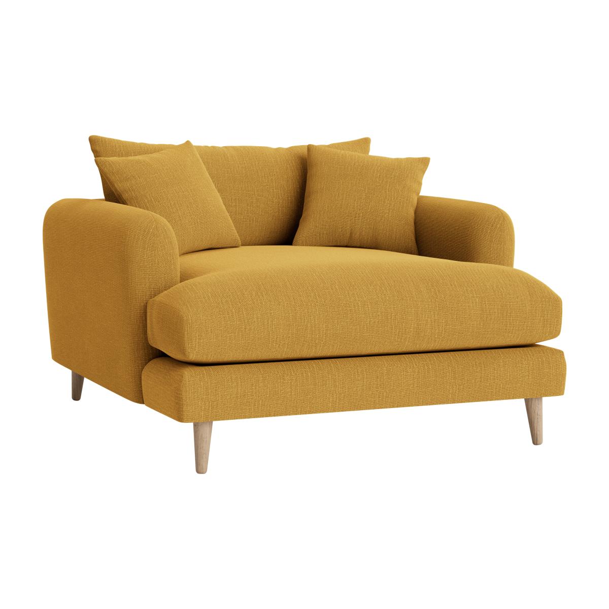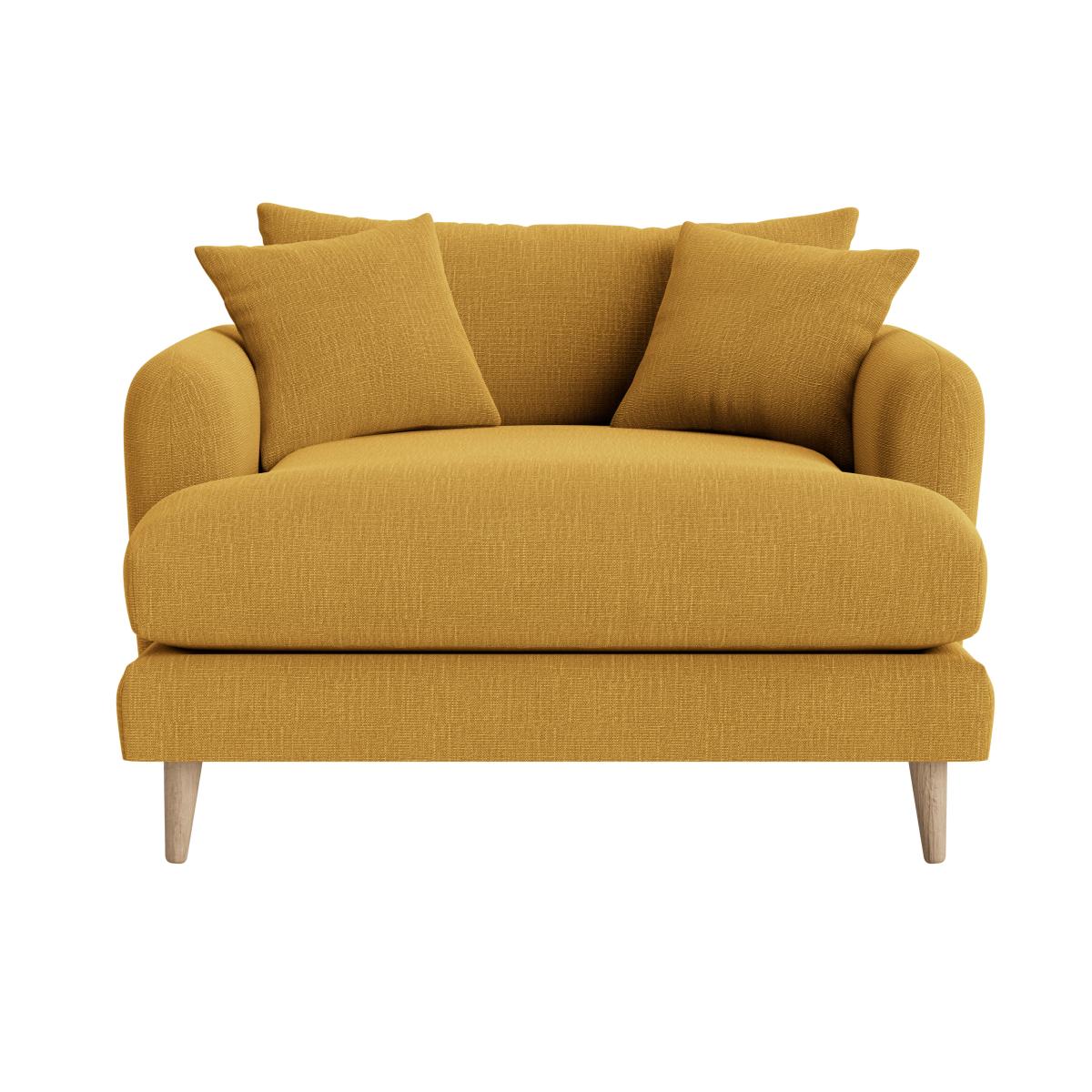 I love this little loveseats for its versatile and contemporary look, which works well in both cosy living rooms and more relaxed lounge areas. Its compact size makes it ideal for smaller spaces or open-plan layouts, providing comfortable seating without overwhelming the room. The mustard yellow brings a cheerful pop of colour and pairs nicely with neutral tones or bold patterns in cushions and accessories. For styling, consider layering with soft throws and a mix of textured cushions to create a relaxed but polished vibe. It also pairs beautifully with both modern and mid-century interiors, making it a flexible choice for a variety of decor styles.