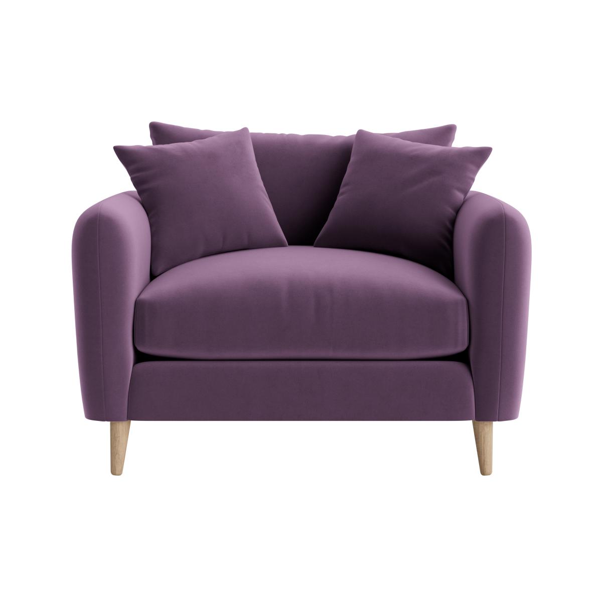 I love the love seat because it offers a compact yet comfortable seating option that works well in a variety of interiors, from cosy living rooms to contemporary flats. The soft purple hue is both versatile and inviting, adding a pop of colour without overpowering the space. For styling, it pairs beautifully with muted tones like greys, creams, or earthy shades for a calming effect, or with bold accessories for a more playful look. Practical tips include accessorising with textured cushions or a throw to add depth, and positioning it close to side tables or reading lamps to enhance its inviting appeal. Its streamlined shape and neutral wooden legs also lend it the flexibility to sit seamlessly within modern, vintage, or eclectic styles.