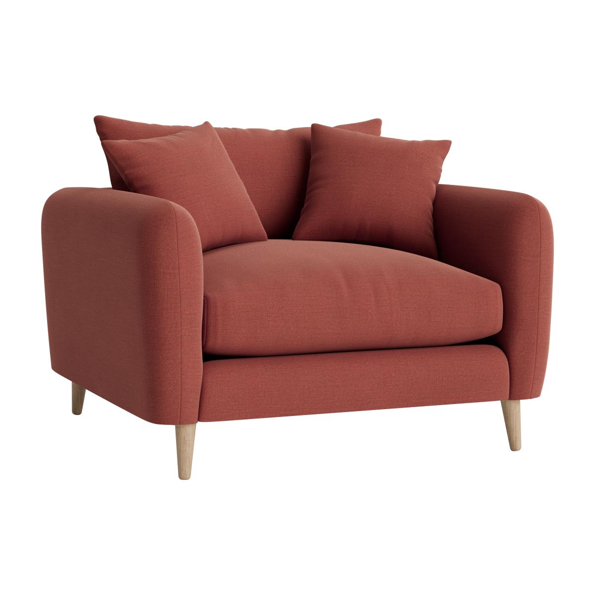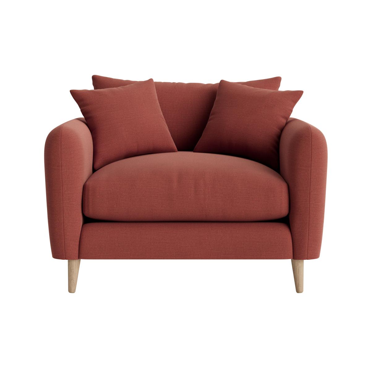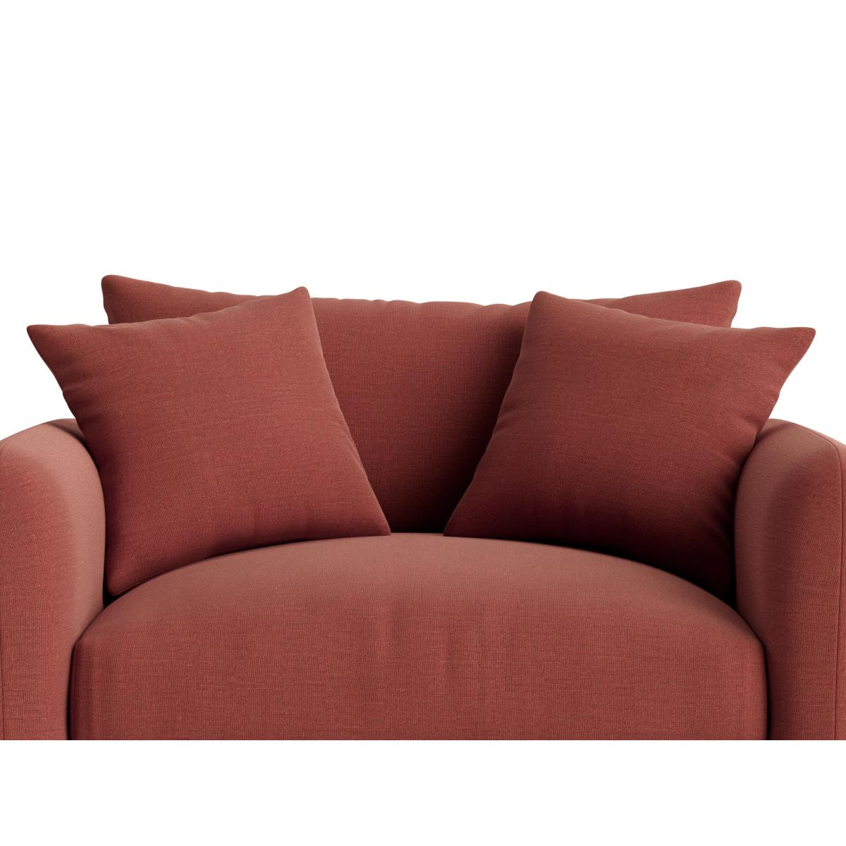 I love this love seat for its compact yet inviting design, making it a versatile addition to both small and larger living spaces. Its cosy proportions and plush cushions create a welcoming vibe, perfect for casual lounging or as a statement piece in a more eclectic interior. The muted, warm tone lends itself well to Scandi-inspired schemes or even more boho and contemporary settings when styled with textured throws and a mix of patterned cushions. Practical styling tips include pairing it with a low coffee table and adding a rug underneath to anchor the space. It also works well with minimalist or mid-century furniture pieces, adding warmth and softness without overwhelming the room.