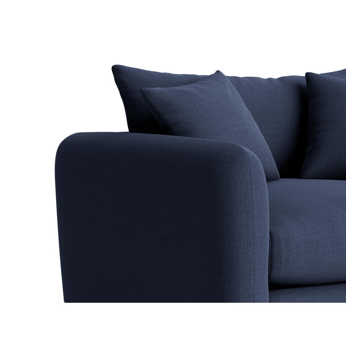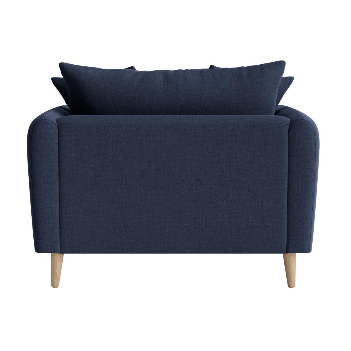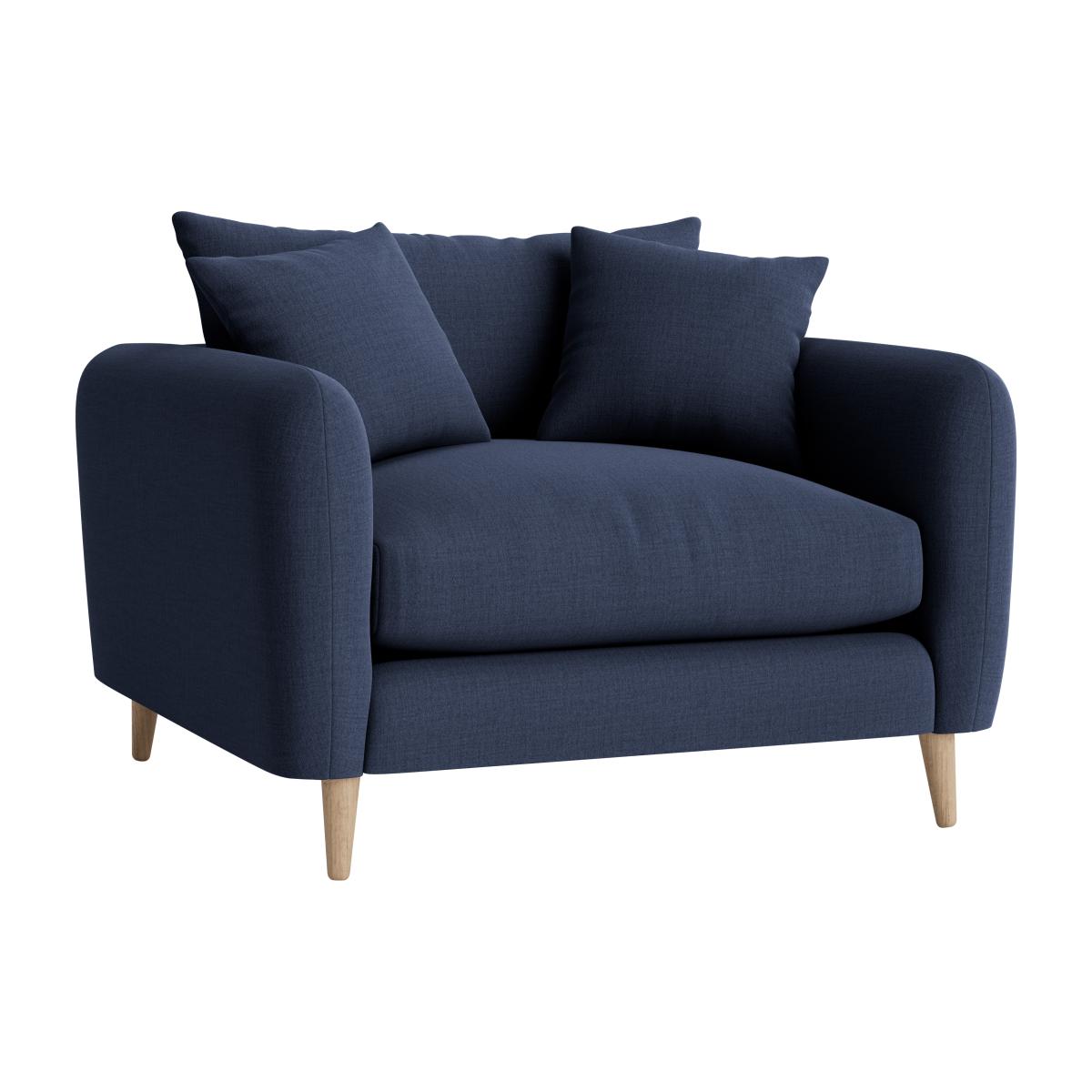 The squishmeister love seat is a fantastic addition for creating cosy and inviting corners. I particularly love its versatile design - the rounded arms and plush cushions lend themselves well to both modern and traditional interiors. Its deep seat and soft fabric make it perfect for relaxed living spaces, reading nooks, or even small apartments where comfort is key. To style it effectively, consider pairing it with layered textiles like patterned throws or silk cushions to add visual interest, and place it against a neutral-toned wall to let its rich navy hue stand out. Its minimalist wooden legs give it a lightness that prevents it from feeling bulky, making it suitable for both open-plan spaces and more intimate settings.