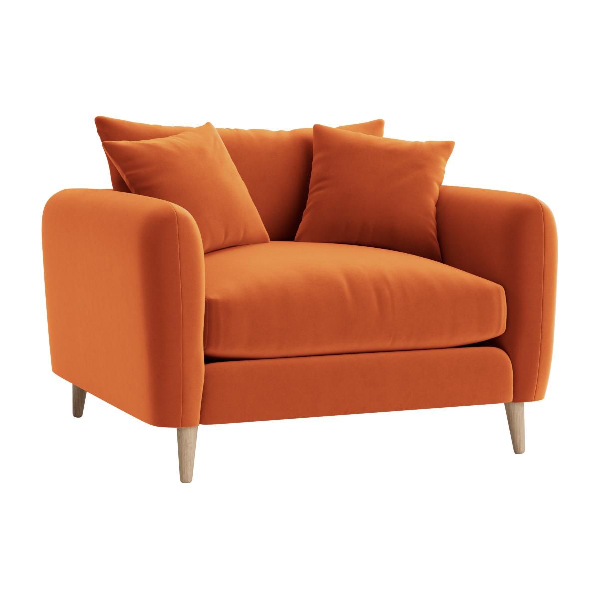 The squishmeister love seat is a fantastic choice for creating a cosy, inviting corner in many interiors. Its bold, warm tone works particularly well in mid-century, eclectic, or modern boho spaces, where colour can really make a statement. I love pairing it with soft, contrasting cushions to add texture and comfort, as well as layering with patterned rugs or throws for a relaxed vibe. Practical styling tips include keeping accessories minimal on the seat itself to highlight its shape and colour, while a side table nearby can enhance its function as a snug, social spot. With its curvaceous form and vibrant hue, this loveseat instantly adds personality, making it a versatile piece for both small flats and larger living rooms.